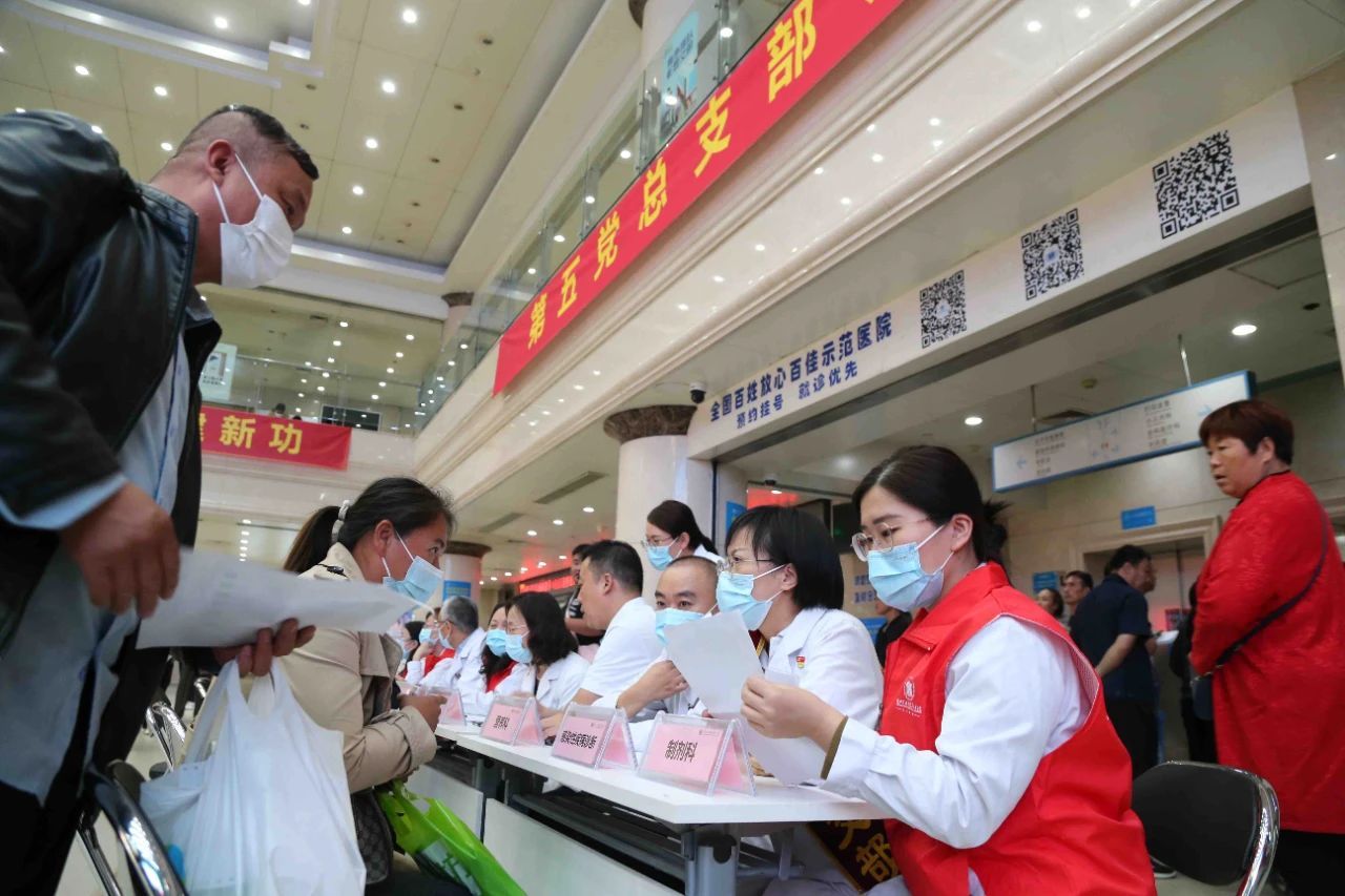 第五党总支组织党员在我院门诊开展了多学科联合义诊咨询活动,为多位患者和家属解答了有关安全用药咨询、病理报告检验报告解读、儿童及糖尿病患者膳食营养、安全用血等多方面的问题。