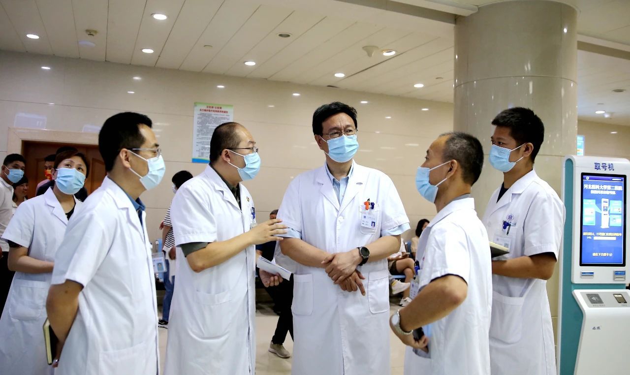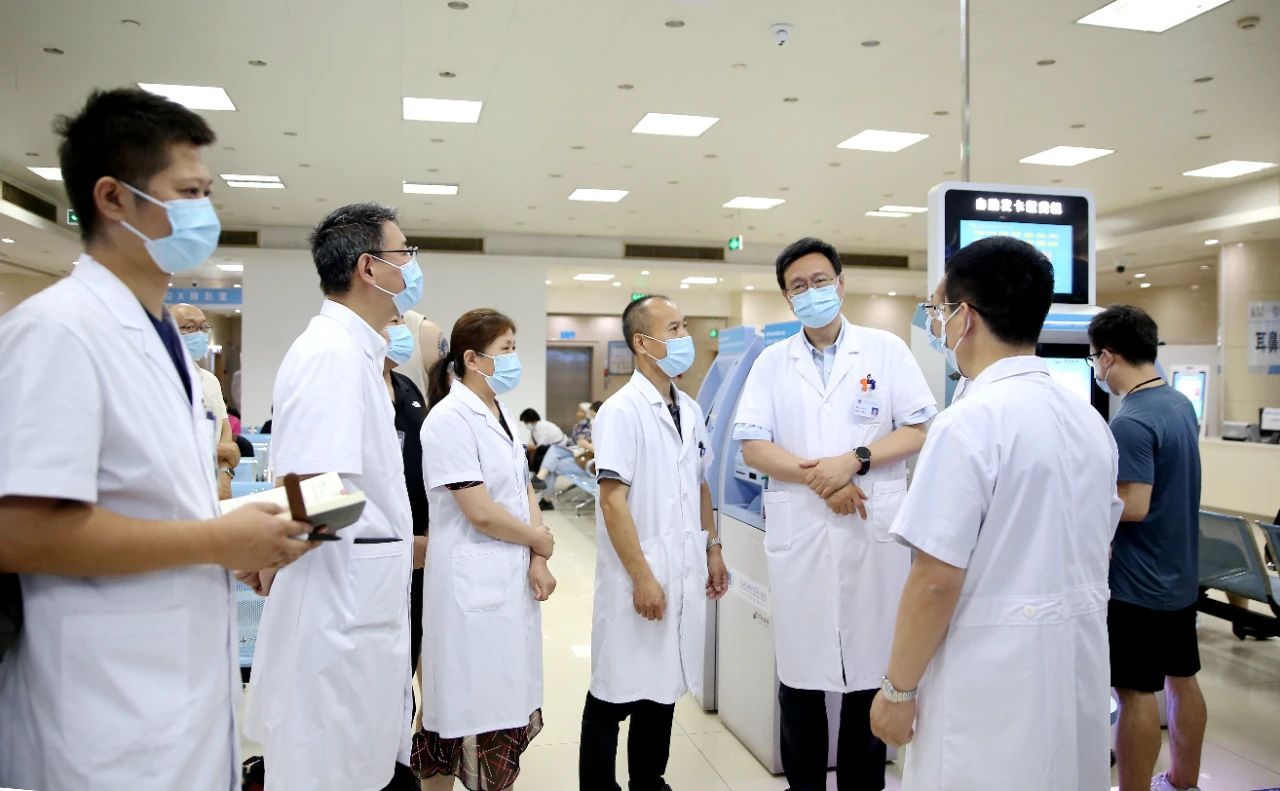 为扎实开展学习贯彻习近平新时代中国特色社会主义思想主题教育,进一步规范医院窗口服务和门诊管理,及时了解掌握各诊室的运转管理流程,保障医疗服务质量和医疗安全,提升患者就医体验,结合“安全生产月”活动要求,6月21日,副院长耿左军带领院办室、医务处、安全工作处、后勤保障部、医学装备部等职能部门负责人深入门诊开展行政查房。