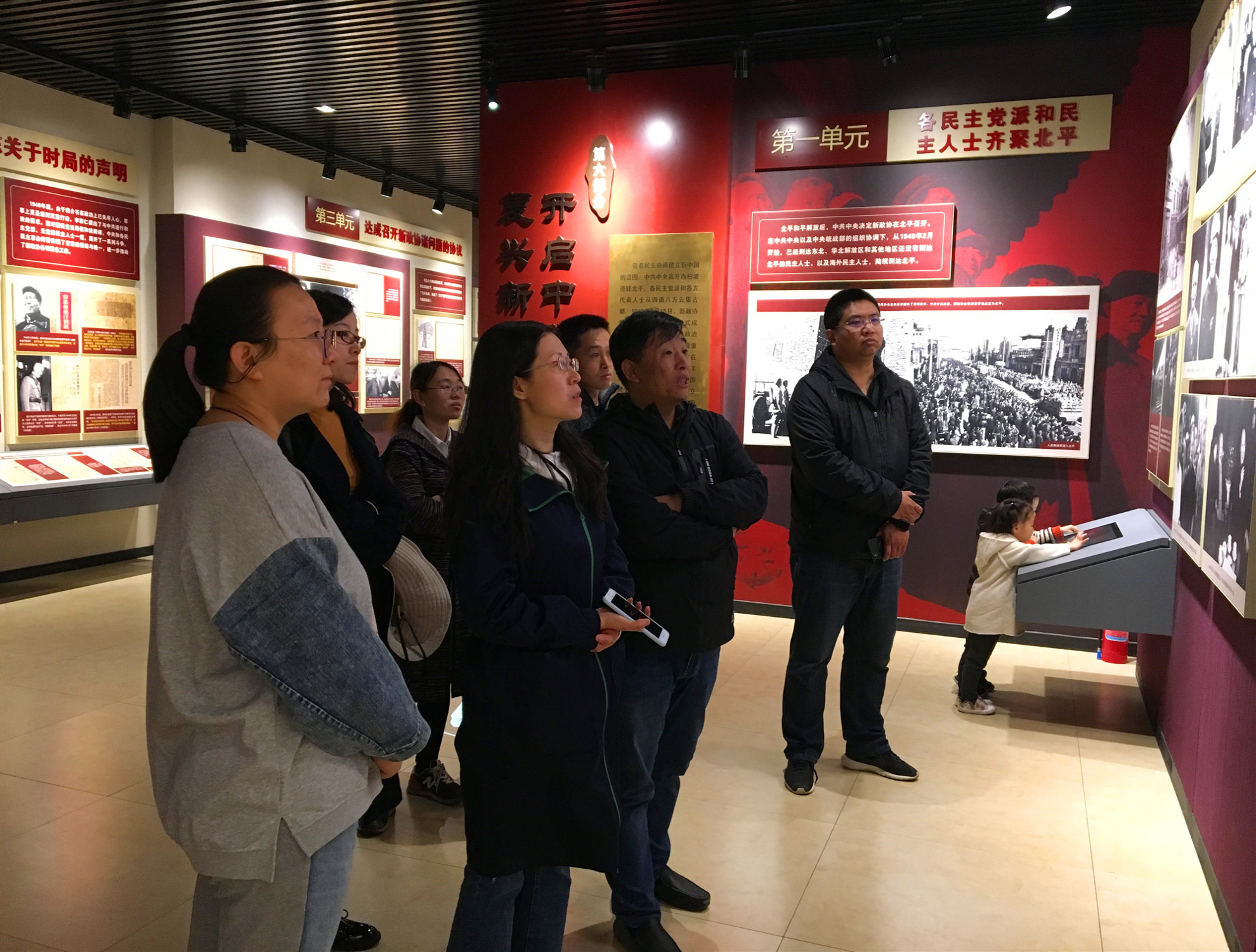 在中央统战部旧址,张书记带领大家一起参观了统一战线陈列馆,馆内一幅幅珍贵的图片、视频资料以及实物史料把大家带进了70年前中央统战部在李家庄的难忘岁月,还原了西柏坡时期统一战线的发展历程和活动场景。