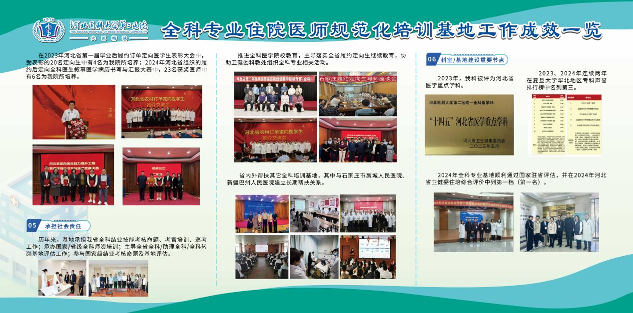 河北医科大学第二医院全科医疗科成立于2013年10月,是我省成立最早、规模较大,集医疗、教学、科研、预防为一体的全科医学诊疗中心。2014年被遴选为首批国家级全科专业住院医师规范化培训基地,2020年被评为我省唯一国家级重点全科专业住院医师规范化培训基地,2020年还推动河北医科大学成立全科医学系(现为全科医学院),2023年被省卫健委评为河北省医学...