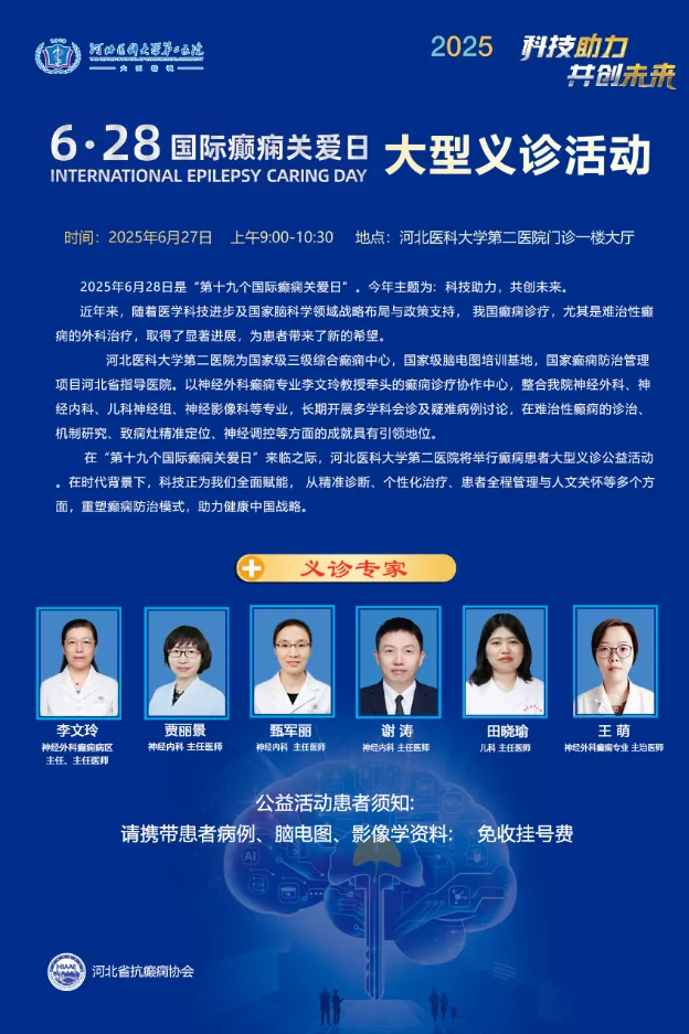 2025年6月28日是“第十九个国际癫痫关爱日”。今年主题为: 科技助力,共创未来。 近年来,随着医学科技进步及国家脑科学领域战略布局与政策支持, 我国癫痫诊疗,尤其是难治性癫痫的外科治疗,取得了显著进展,为患...