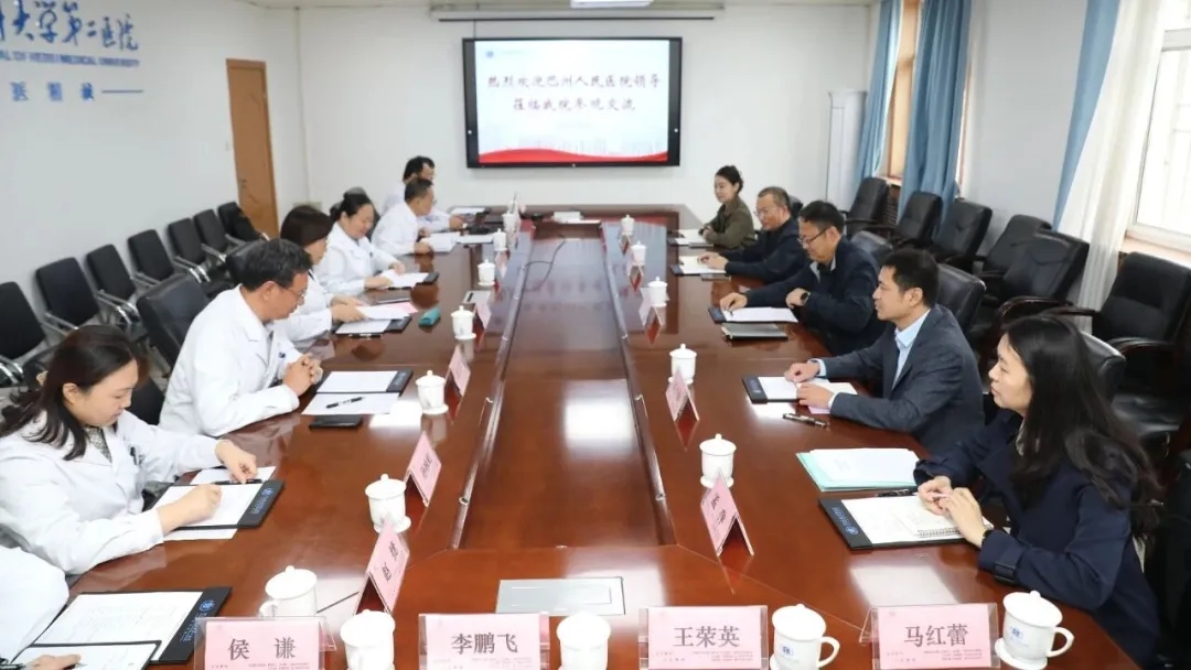 10月16日上午,新疆巴州人民医院党委书记、副院长许多恒,党委委员、副院长(援疆)吴干勋,副院长张辅江、组织人事科主任孟萍、医务科副主任汪睿到我院座谈交流。我院党委书记王贵英,党委委员、副院长阎雪,党委委...