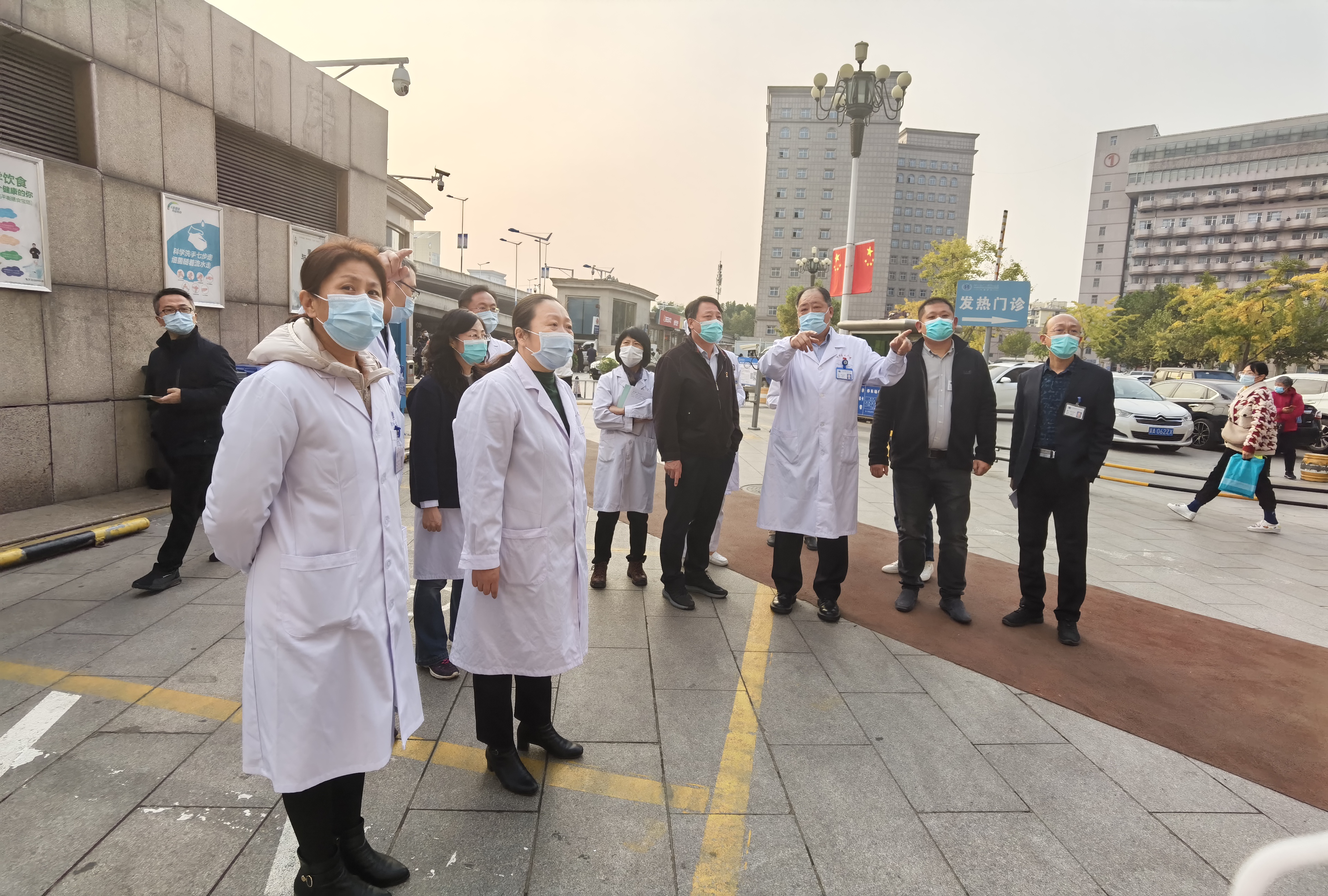 10月20日下午,时保军院长、阎雪副院长带领院办室、感染控制处、医务处、护理部、后勤保障部、安全工作处、经管办等部门负责人开展新冠肺炎疫情防控检查。 (门诊楼入口处,提出改进方案...