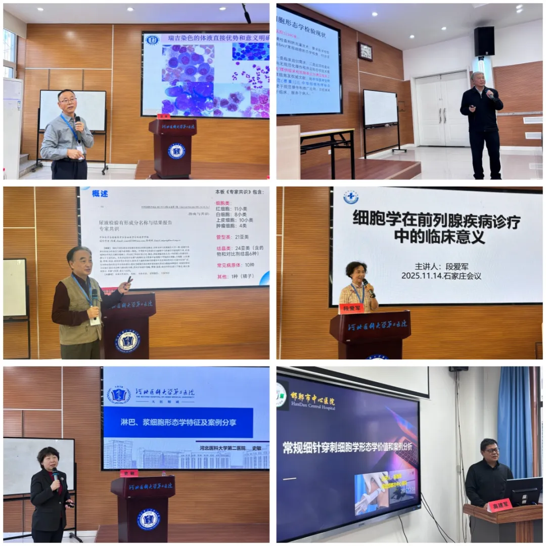 培训中,国内体液细胞形态学领域权威专家吴茅、周道银、张时民、段爱军、史敏、高建军、吴侠、郑素洁和我院杨洪乐、马香书、高羽高等一线资深检验医师理论授课。培训课程从《体液细胞检验的现状及临床意义》的行业宏观分析,到《胸腹水专家共识解读》的规范解读,再到《尿液染色细胞形态与案例介绍》的实战教学。涵盖了胸腹水、脑脊液、肺泡灌洗液、尿液、关节腔积液及前列腺液等多种体液的细胞学检验与诊断要点,实现了理论与实践的有机衔接。