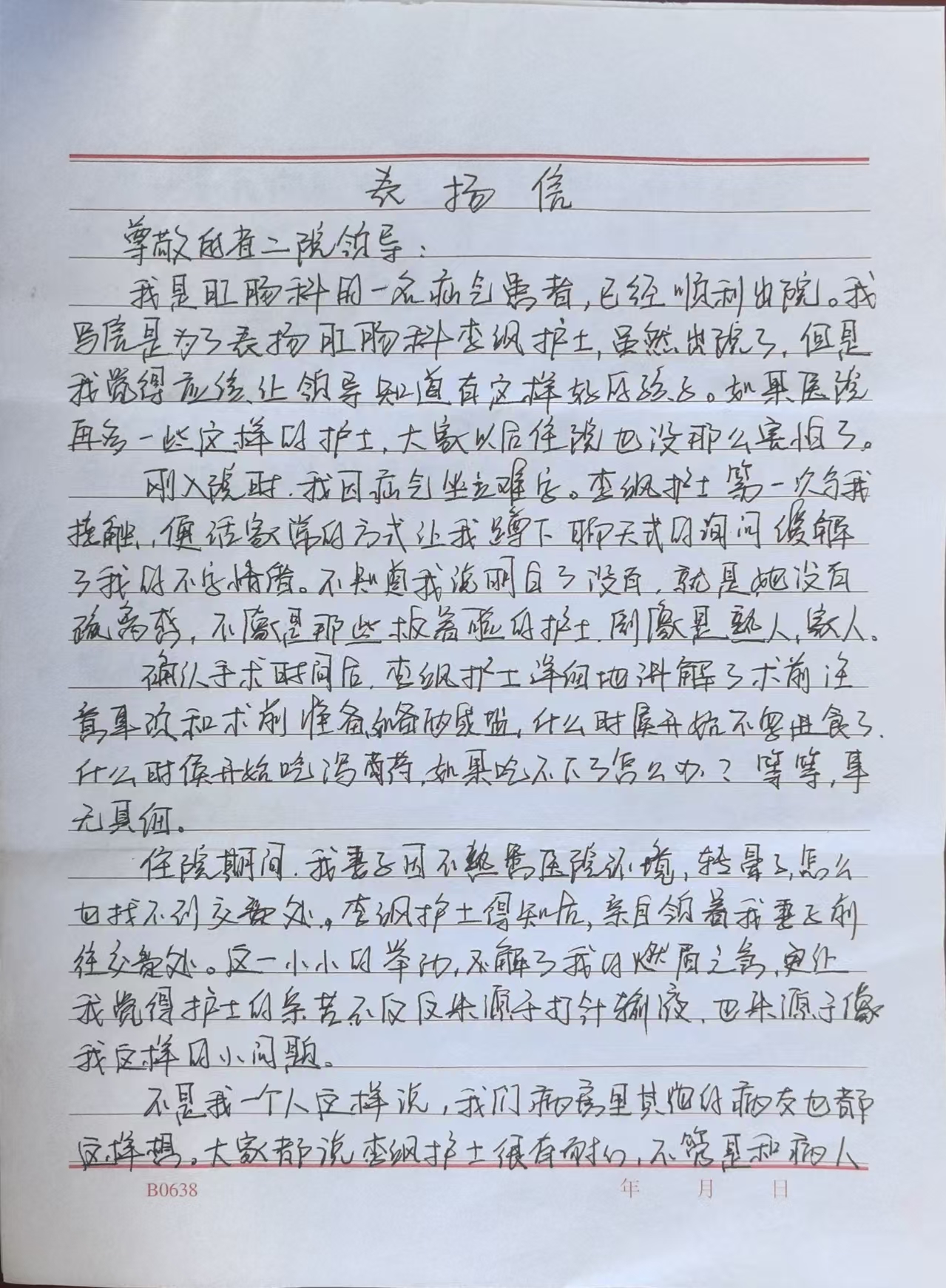 致肛肠外科李飒护士的感谢信