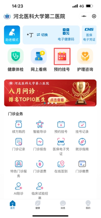 2. 点击首页【预约挂号】