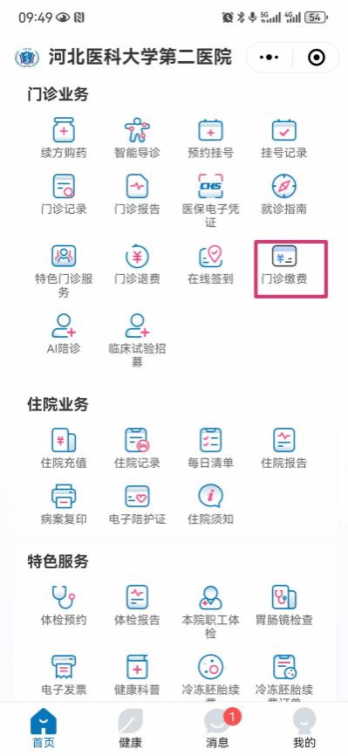 1. 微信搜索【河北医科大学第二医院互联网医院】小程序