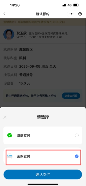 4. 选择支付方式——医保支付