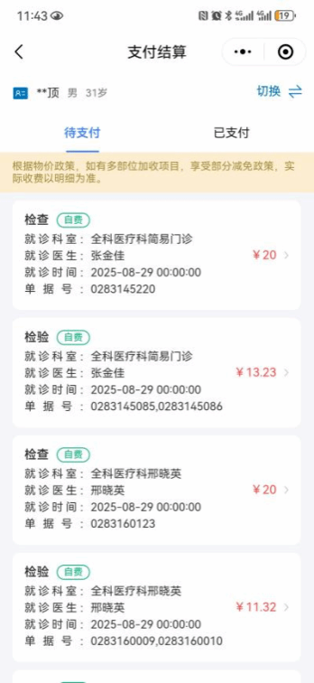 1. 线下就诊并开检查检验以及药品的患者可点击门诊缴费