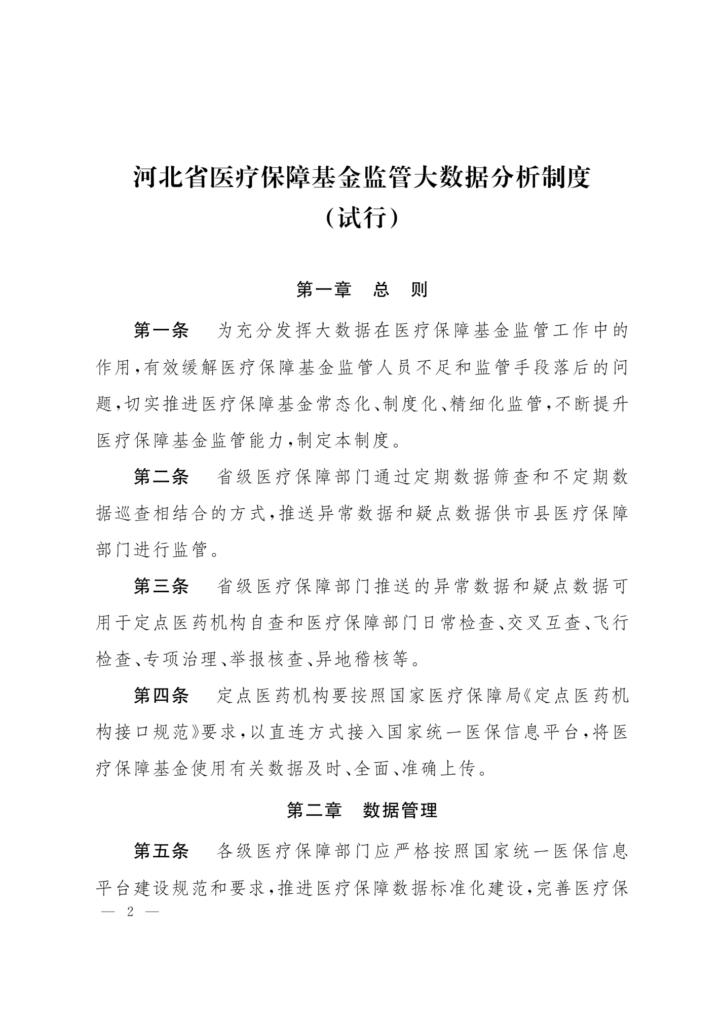 河北省医疗保障局关于印发《河北省医疗保障基金监管大数据分析制度(试行)》的通知