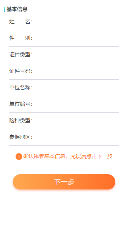 STEP05选择“为他人申报”需要进行患者身份验证,填写完点击“下一步”;如果是本人申报,无需验证直接进入“下一步”