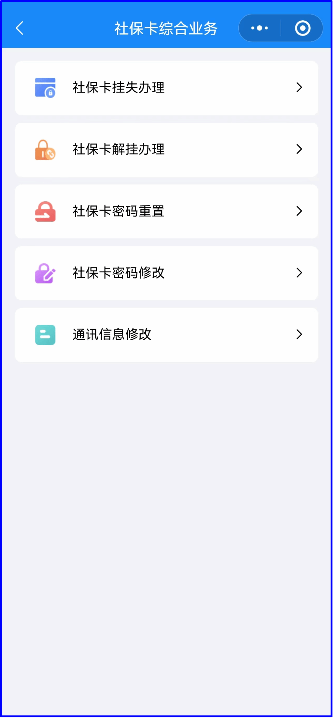 社保卡挂失、解挂、密码重置、密码修改业务通过手机直接操作!在小程序页面,点击“社保卡综合业务”即可办理社保卡挂失、解挂、密码重置、密码修改业务。以上业务支持为本人办理,也支持为亲属代办。