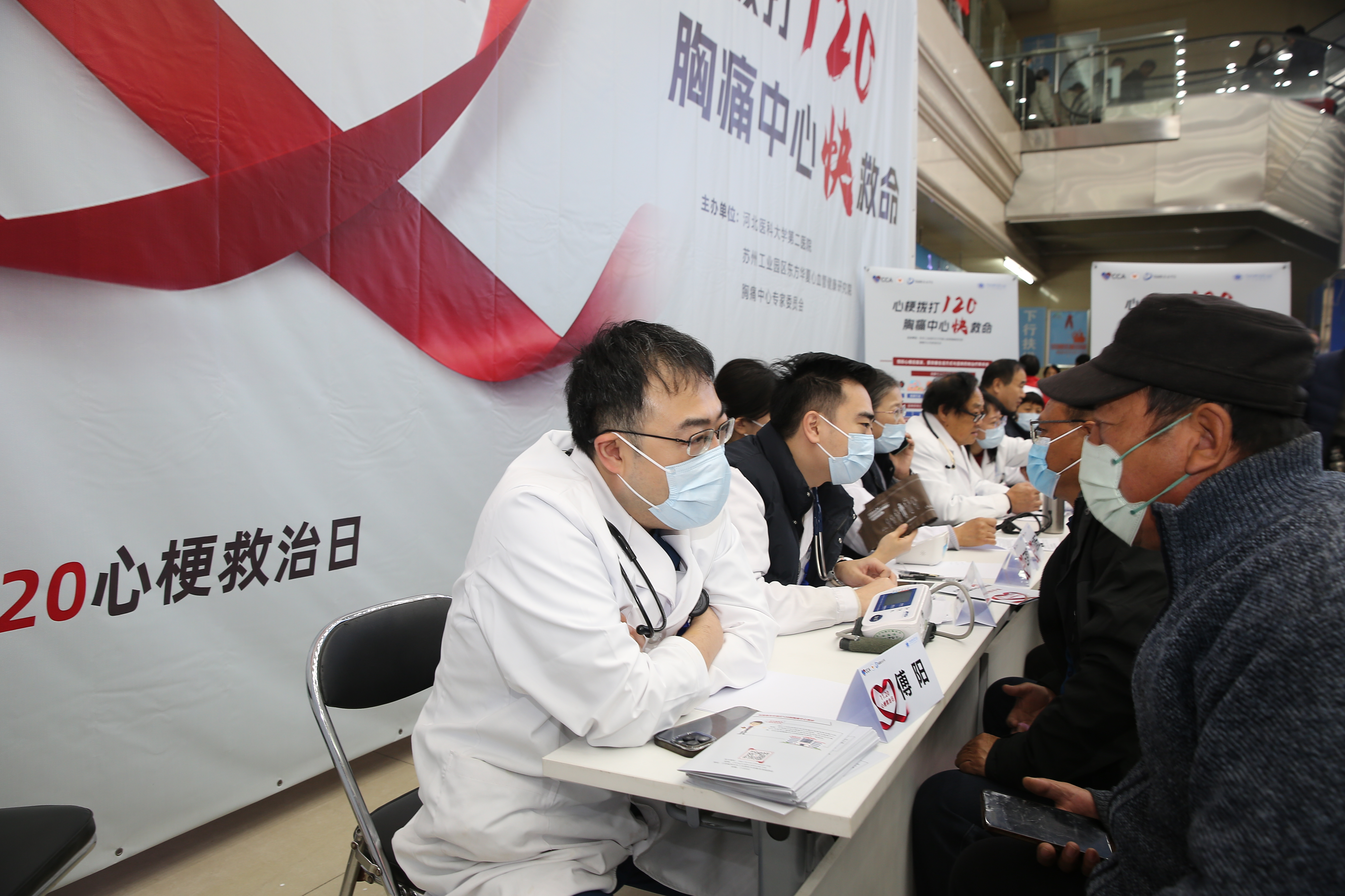 河北省胸痛中心联盟主席、我院心内科首席专家傅向华教授,心内科刘素云、姜云发、范卫泽、董翠霞等专家率领团队共同参与。现场通过播放医学知识宣传片、设置宣传展板、发放健康手册等多种形式,向市民普及急性心梗的防治知识。