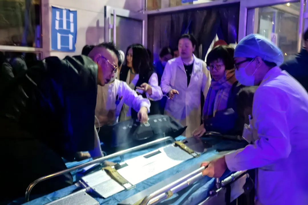 危急时刻,院区医护人员自发加入救援队伍。心内七科值班医师吴琼、护士刘雅梦,呼吸内三科护士长刘桂森、护士贺子娟,消化内科研究生张乐,导诊护士张月等闻讯后迅速携带急救设备赶到现场,展开生命体征监测、吸氧等基础救治。呼吸内三科职工梁冰洁下班路过大厅,发现患者异常后,毫不犹豫参与救援,协助医护人员抬运患者、全程陪护,并及时联系科室同事携带氧气袋赶赴现场支援。