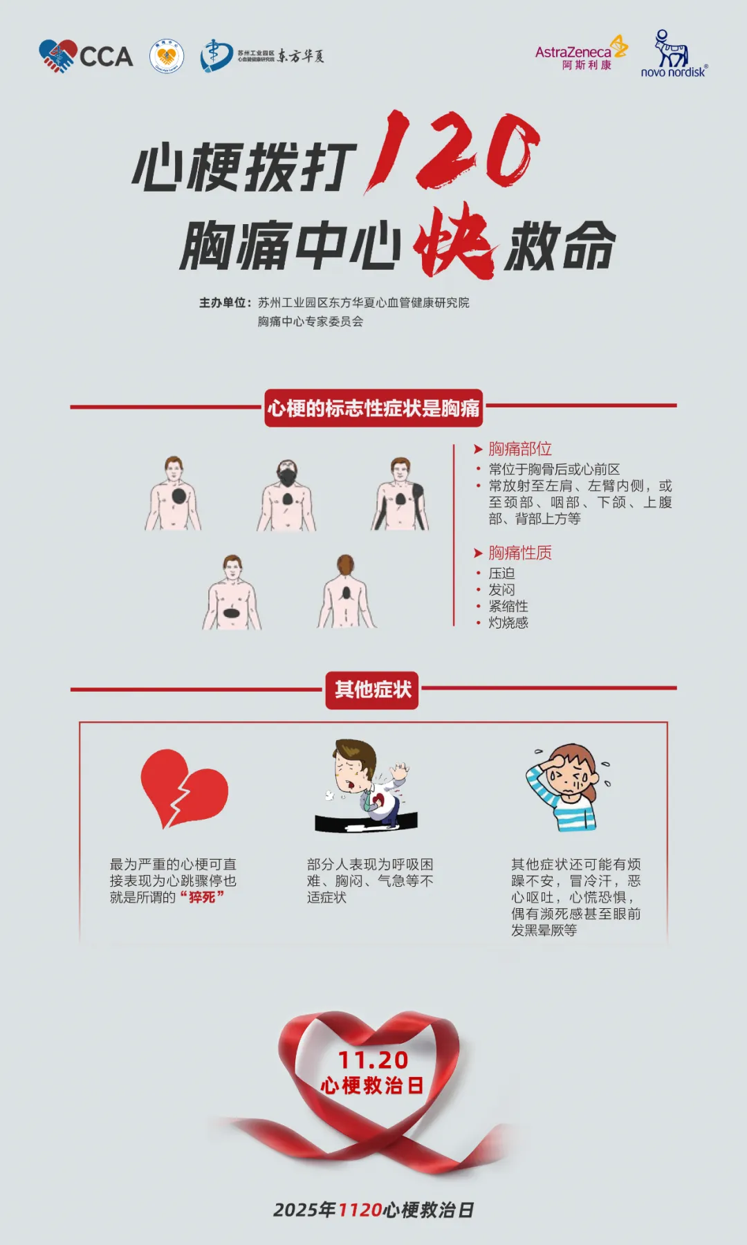 为提高公众对急性心肌梗死严重性与防治重要性的认知,普及急性心梗的规范化救治流程,中国医师协会于2014年成立了“心梗救治日”,确定每年的11月20日为“中国1120心梗救治日”。