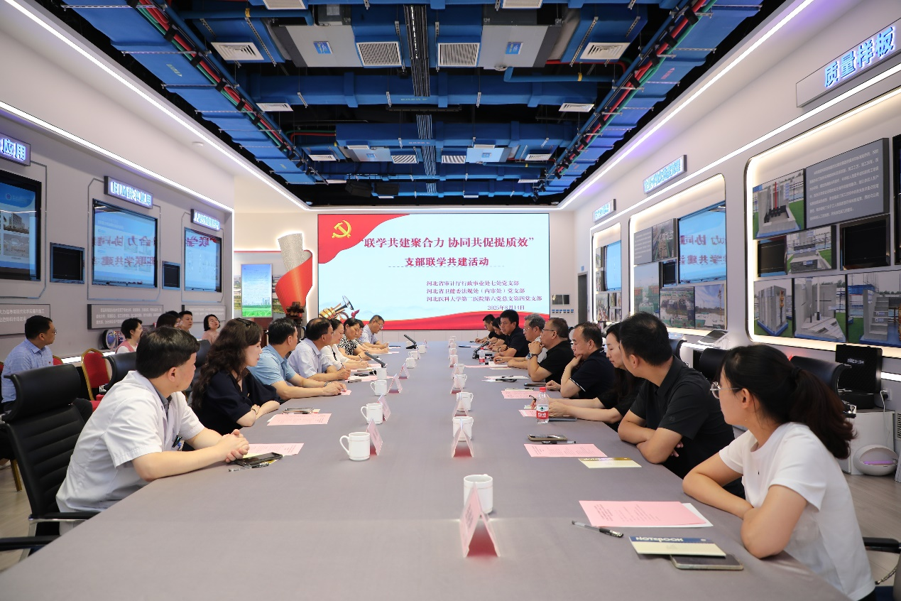 8月14日,省审计厅行政事业处七处党支部、省卫生健康委员会法规处(内审处)党支部与我院第六党总支第四党支部(审计处、采购处)在正定院区联合开展“联学共建聚合力,协同共促提质效”主题活动。省卫健委党组成员、副主任马哲,省审计厅行政事业处七处处长、支部书记刘随波,省卫健委法规处(内审处)处长、支部书记王拴锋,我院副院长陈康、阎雪及相关部门负责人、支部党员参加活动。