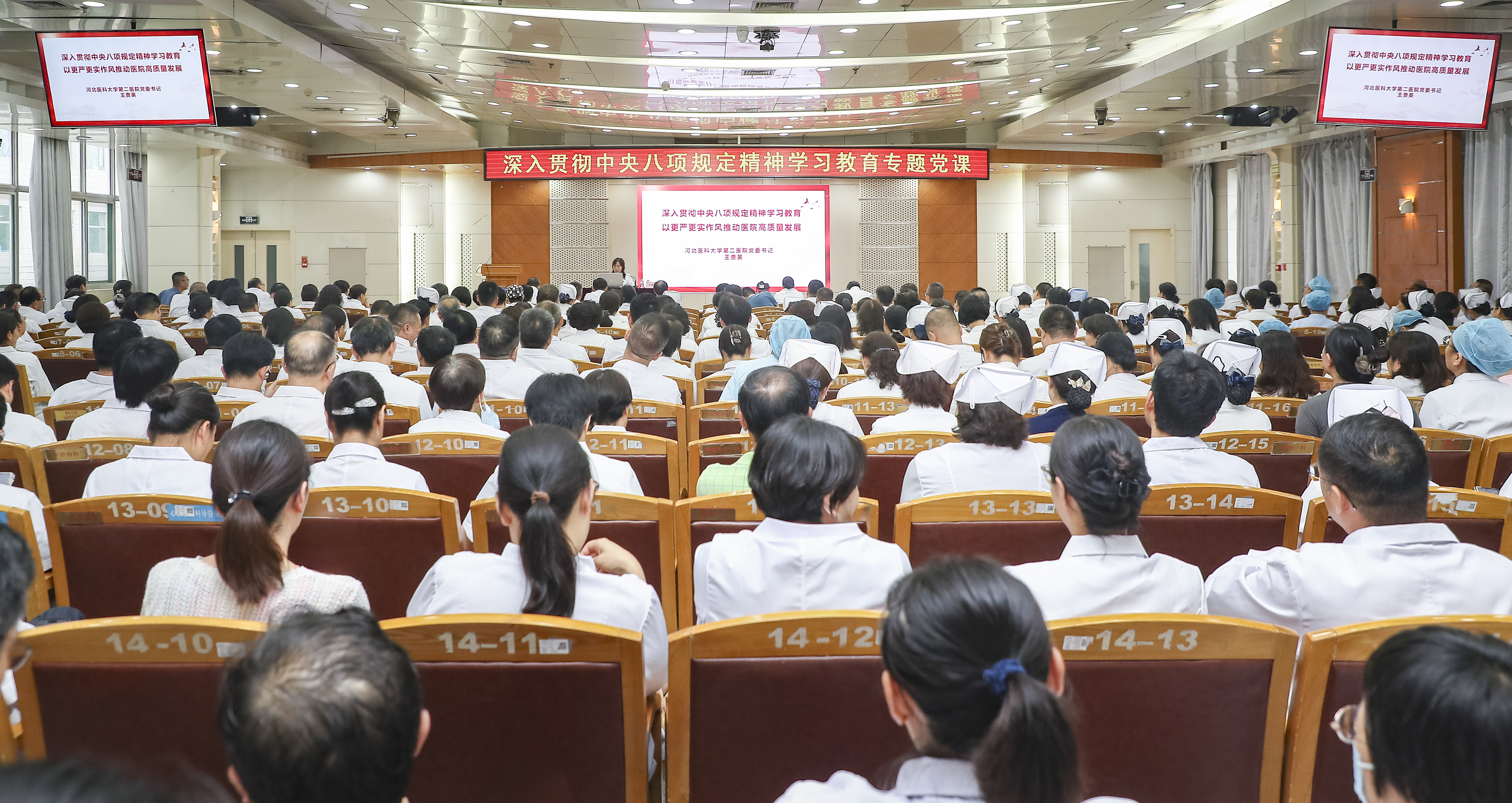 王书记强调,健全全面从严治党体系,作风建设永远在路上,全面从严治党永远在路上,党的自我革命永远在路上。全体党员干部要认真学习总书记关于加强党的作风建设的重要论述和中央八项规定及其实施细则精神,学习好、运用好深入贯彻中央八项规定精神的成效和经验,将纪律要求转化为推动医院高质量发展的强劲动力,以清正党风、务实作风凝聚合力,在医院中心工作中展现担当作为,为健康中国、健康河北建设贡献坚实力量。
