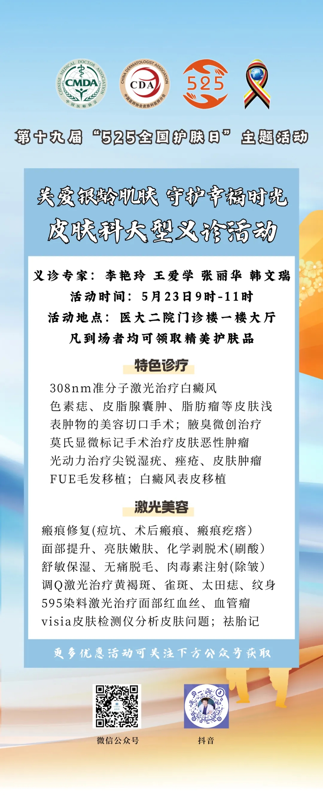 义诊预告 | 5月23日,河北医大二院举办“关爱银龄肌肤,守护幸福时光”皮肤科大型义诊!