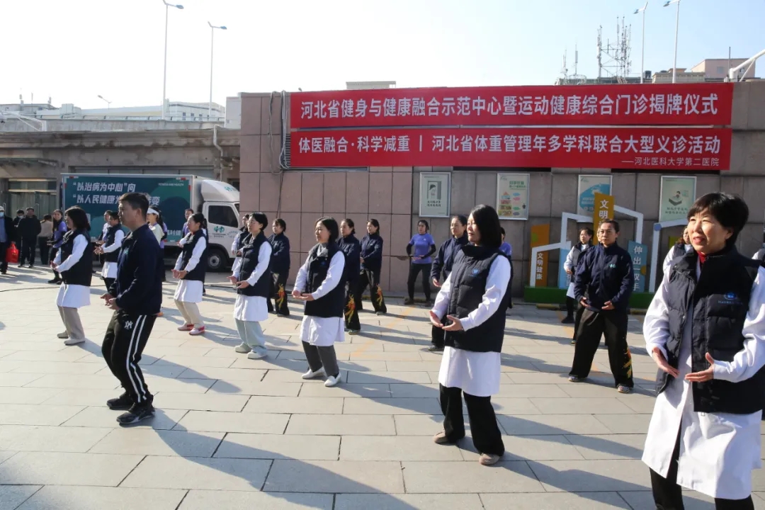 河北医大二院“体重管理,从医做起-医护午间活力营”也于当日开营。医护人员现场展示“白衣八段锦”,以优美的动作展现中医传统运动在健康促进中的独特作用,吸引了众多市民热情参与。