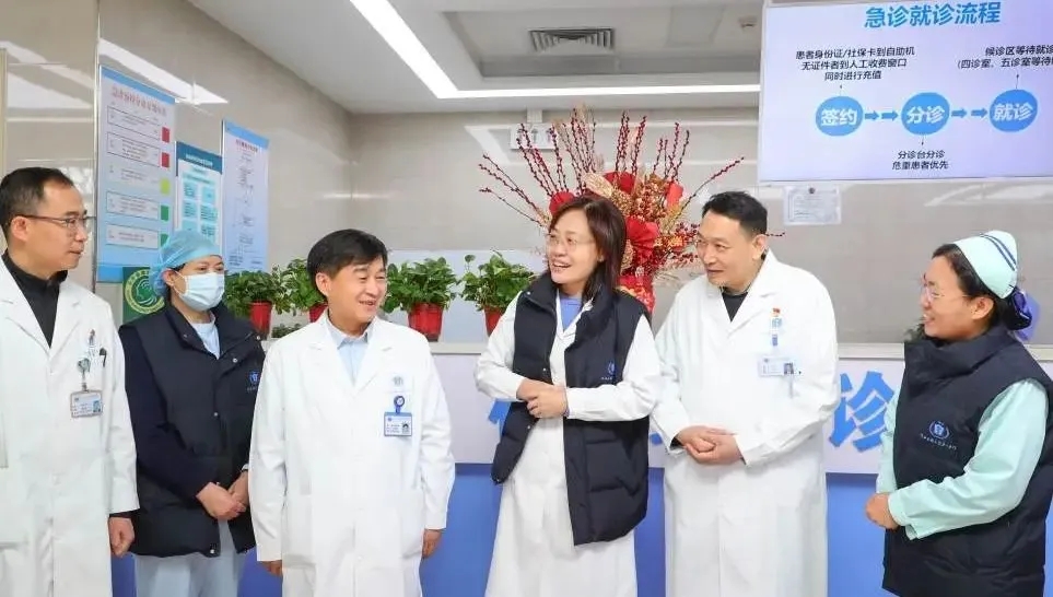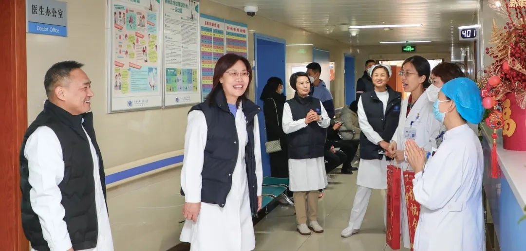 王书记一行还亲切慰问了门诊收费处、天使工作站、门诊药房的同志们,对他们的辛勤付出表示衷心感谢,并提前送上新春的祝福。