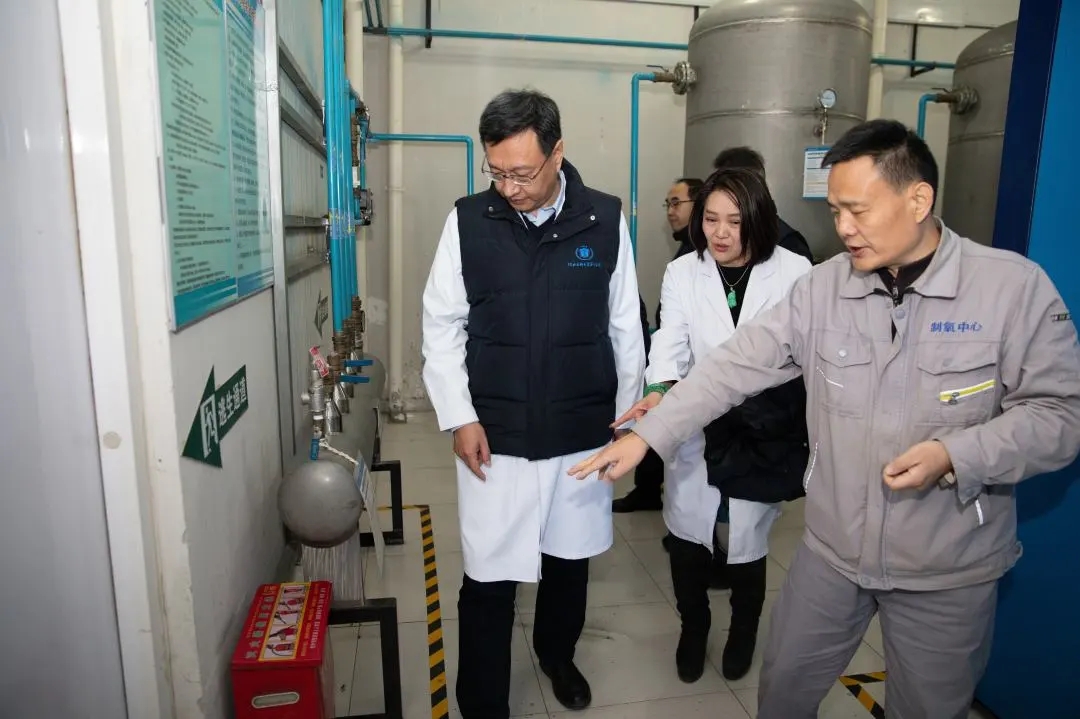 副院长陈康、于宝海一行前往鹿泉院区和上庄院区慰问。在鹿泉院区,院领导一行先后慰问了鹿泉院区中医内科门诊、神经外科门诊、呼吸与危重症医学一科门诊、消化内科、重症医学科、心脏外科、产科、心血管内二科(胸痛中心)。每到一处,院领导都与坚守岗位的职工亲切握手、交谈,详细了解他们的工作情况,并送上新春的祝福和问候。在上庄院区,院领导一行了解了医养结合工作开展情况,并祝同志们新春快乐。
