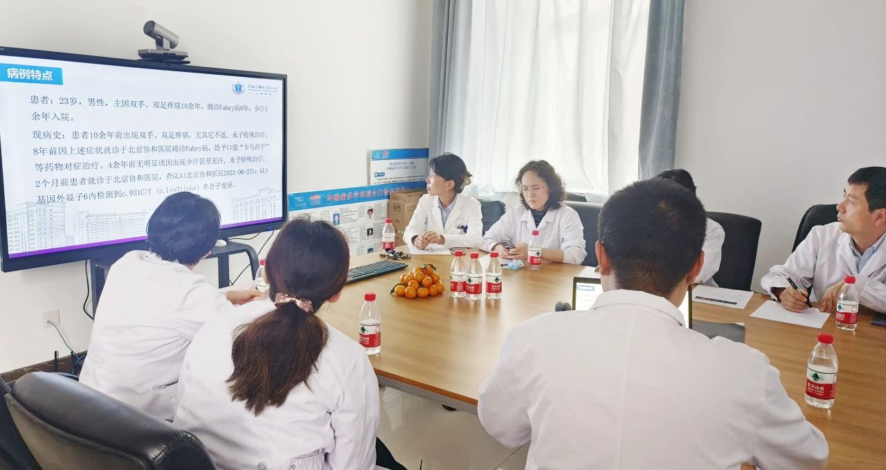 肾内科李绍梅教授、心血管内二科鲁静朝教授接诊患者后,在最短时间内完善相关并发症检查。检查发现:两位患者均有不同程度的肾脏、心脏、神经、眼部受累。为尽快明晰病情、规范治疗,两位教授组织了我院罕见病MDT团队会诊。