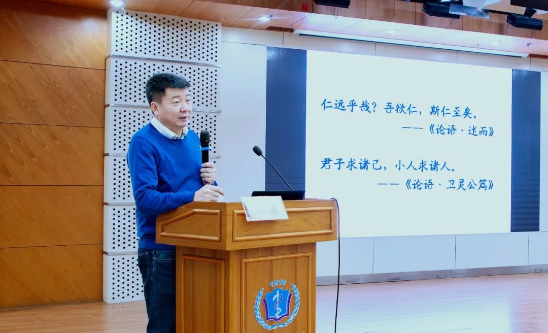 此次培训的主题是《医学人文与医患关系》,北京大学人文学院副院长王岳教授应邀授课。王教授立足当前医患关系现状,旁征博引,引经据典,结合中外医学发展实践,深入浅出的指出了在医疗工作中普及人文精神的重要性,通过列举生活工作中普通而又深刻的身边事,从医学人文精神的三大核心元素“人本、仁爱、公益”的角度出发,形象生动的阐释了医患和谐共处之道,引导医务人员要进一步思考医疗行为的初衷,站在患者角度考虑问题,尊重患者的人格尊严、生命价值和医疗权利,坚持以人为本,以患者为中心,在构建和谐的医患关系中自觉发挥主导作用。