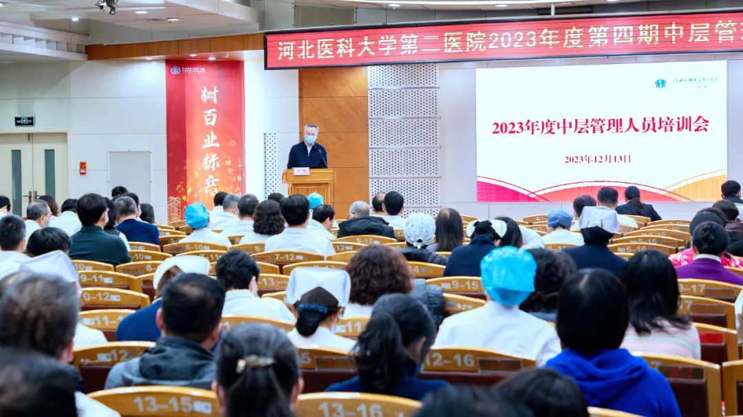 根据医院党委年度培训安排,结合当前工作需要,12月13日下午,我院在图书馆三楼会议室举行了第四季度中层管理人员集中培训,院领导、科级干部、党总支书记、党支部书记、临床医技科室主任及护士长共计400余人参加培训。