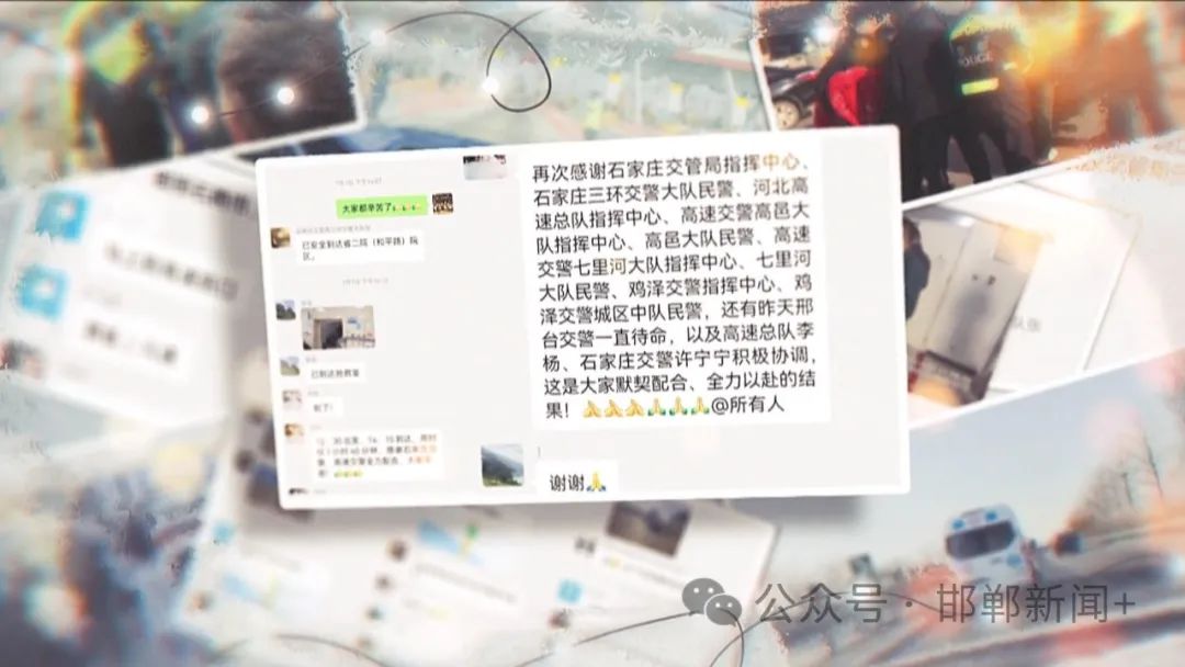事情发生在1月7日11时左右,邯郸市鸡泽县一名14岁少年突发疾病,心跳骤停,急需转至位于石家庄的河北医科大学第二医院急救,家属求助交警。邯郸交警、高速交警和石家庄交警成立了“联动救助”微信联系群,开辟绿色通道。14时10分许,车队顺利抵达医院,少年被送入抢救室急救,此时距离从鸡泽县出发仅有1小时40分钟。