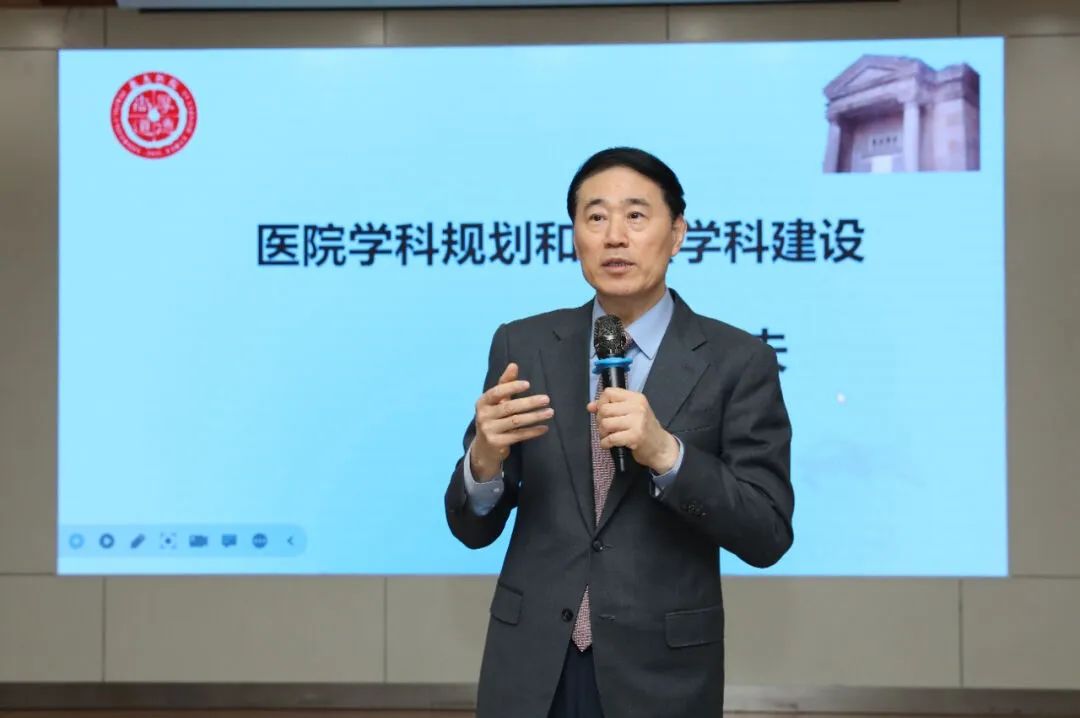 此次培训的题目是《医院学科规划和重点学科建设》,北京大学原党委常务副书记、北京大学医学部原党委书记、北京大学第一医院原院长刘玉村教授应邀授课。刘教授就医院高质量发展、学科建设等方面内容进行了深入浅出讲解,具体介绍了为什么要规划、怎样规划学科和建设重点学科,学科建设的效果怎么样,如何实现医院高质量发展等内容,授课内容紧贴医院工作实际,阐释了“讲政治”“讲文化”等抽象概念,视野宏阔,见解独到,对于我院学科建设和发展具有很强的借鉴性。