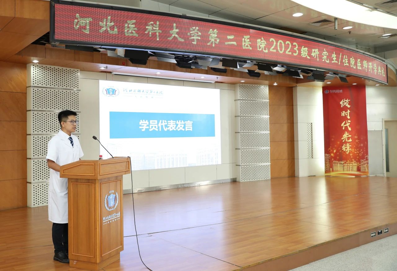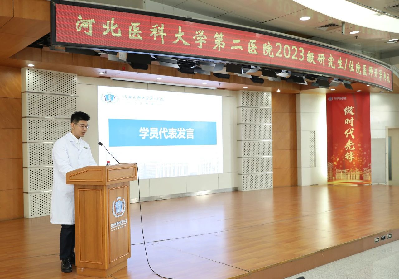 2023级专硕研究生任天潼、2023级住培学员柳智雨代表全体同学表示,今后在二院的学习生活中,定会严格要求自己,刻苦钻研,孜孜不倦,精益求精,不断提高自己的专业水平和素质,肩负起新时代医学生的责任和使命,为祖国医药卫生事业和人类身心健康奋斗终生。