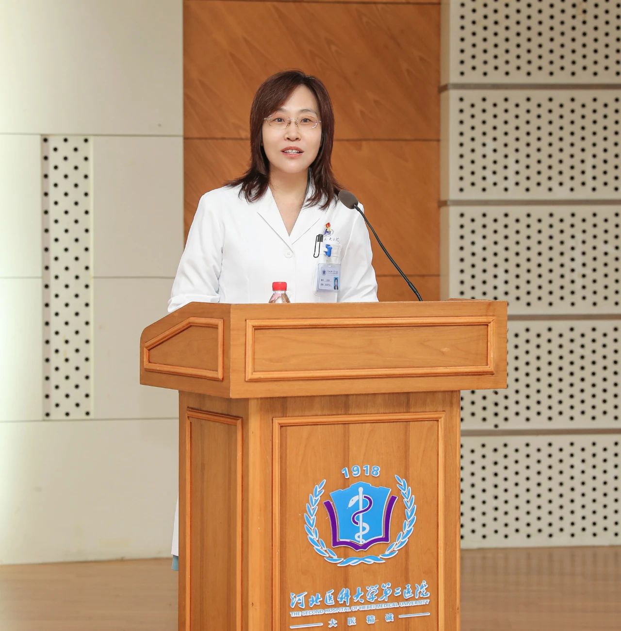王贵英书记在致辞中代表医院对同学们的到来表示热烈欢迎,并向同学们介绍了二院的百年历史与传承。王书记对同学们提出了三点要求:一是适应环境,尽快融入;二是爱岗敬业,尊师重教;三是主动学习,善于总结。王书记指出,从现在起,同学们就是二院大家庭中的一员了,“大医精诚”不仅是二院的医院精神,更是历代医者研习医术、治病救人的行为准则,大家一定要将“大医精诚”的二院精神内化于心、外化于行,牢记医学生誓言,未来成为一名德艺双馨的仁医、良医。