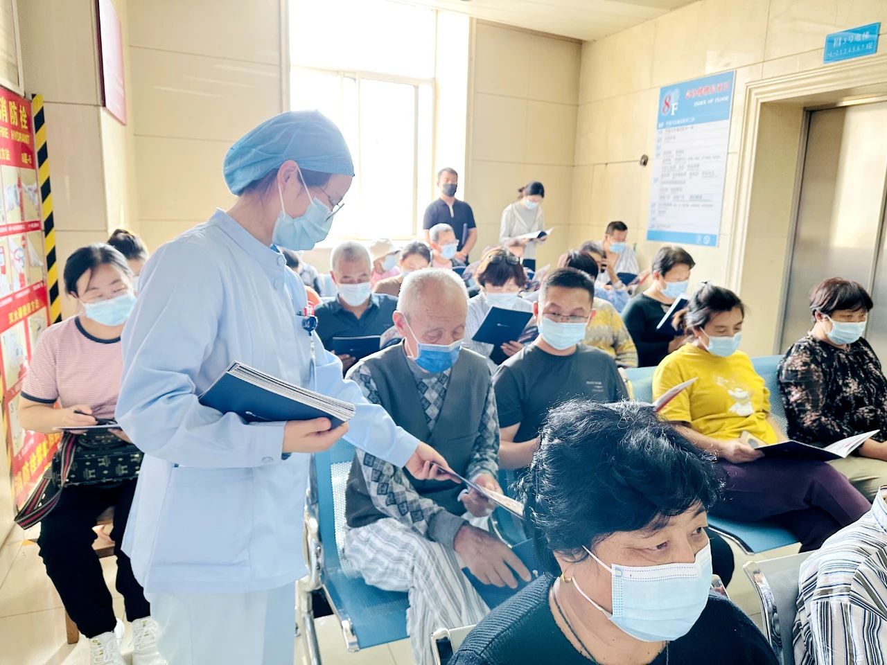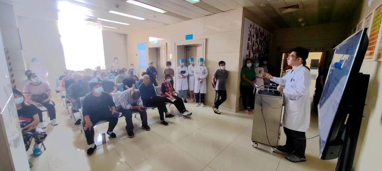 当天下午,在袁雅冬教授的组织下,呼吸与危重症医学二科举行关于血栓的患者宣教活动,专家们分别以“带您认识VTE”、“警惕隐匿的‘杀手’——肺栓塞”为题目,用通俗易懂语言,生动形象地全面介绍了VTE的概念、危害、高危人群、症状、治疗及预防的相关知识。静脉血栓栓塞症护理团队则以“VTE的预防与护理”为题,通过现场讲解和动作示范相结合的方式,对如何预防深静脉血栓进行了教学指导。