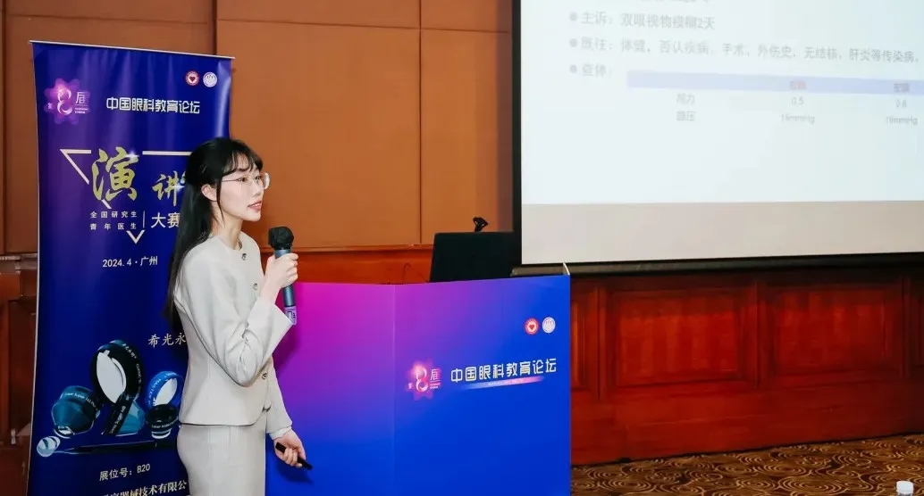 在4月12日举办的第八届中国眼科教育论坛全国研究生、青年医生演讲大赛决赛中,我院眼科研究生梁雨辰、付华、王江南与国内多家顶级医院的青年才俊同场竞技,经过激烈角逐,2021级研究生梁雨辰取得全国第一名的佳绩、荣获一等奖,2023级研究生付华荣获三等奖。