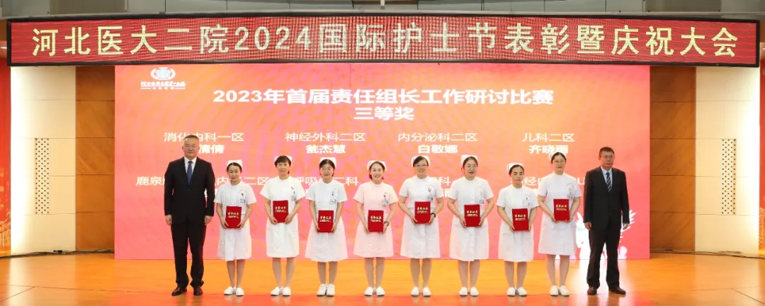 院领导分别为2023年度患者最满意护士、“美丽病房流动红旗评比活动”获奖科室、健康教育科普视频比赛、护理技能竞赛、“爱岗敬业”护理主题演讲比赛等12个奖项的308名获奖护士代表颁发了证书。
