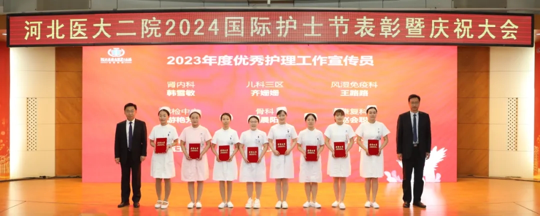 孟夏之日,万物并秀。在这充满希望的时节,我们迎来了第113个国际护士节。为致敬白衣天使,弘扬南丁格尔精神,5月9日,我院在图书馆三楼召开了2024国际护士节表彰暨庆祝大会,对一年来在护理工作中表现突出的集体和个人进行表彰。