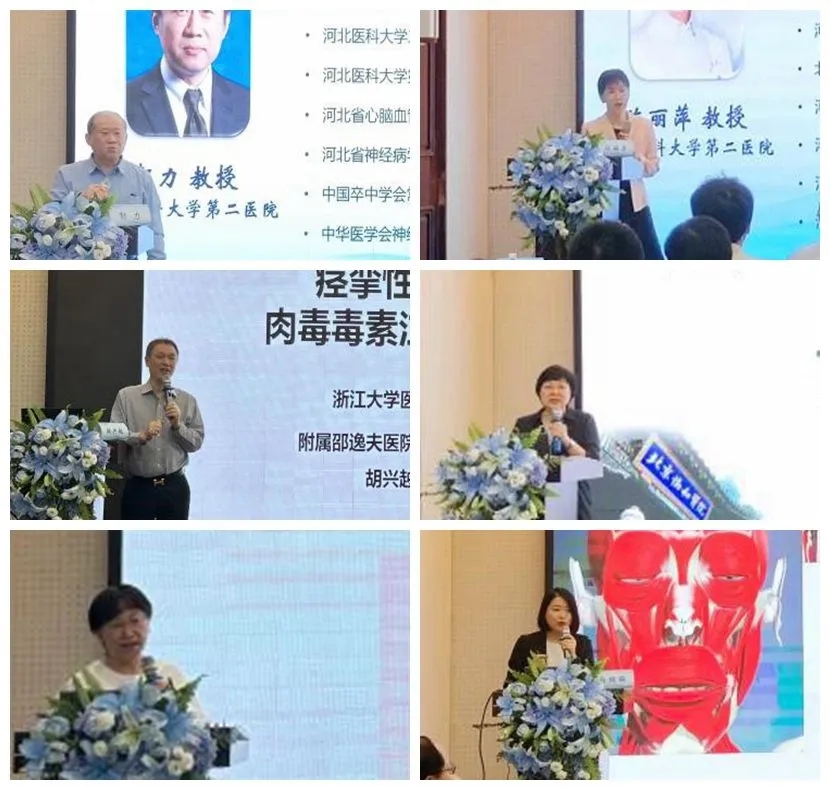 会上,北京协和医院万新华,邵逸夫医院胡兴越,北京天坛医院潘华,河北省卒中学会会长郭力,我院刘亚玲、李振飞,河北省人民医院王天俊,石家庄市人民医院陈秀明,邯郸市第一医院闫明坤,河北医科大学第一医院解冰川,美联臣医疗美容医院白鹏丽等多位国内相关领域的知名专家进行授课和交流。专家们围绕痉挛性斜颈肉毒毒素注射技术、肉毒毒素在神经科的治疗应用及进展、震颤与肉毒毒素治疗、A型肉毒毒素长期治疗的有效性及安全性、肉毒毒素在康复领域中的应用和面肌痉挛的肉毒毒素治疗的相关内容进行分享,并结合临床病例和诊疗经验进行了精彩的肉毒毒素病例分析等,他们的讲解深入浅出、贴近实际、生动具体,得到了与会人员的一致好评。