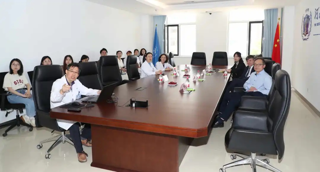 河北医科大学中爱干细胞中心外方主任Timothy O’Brien教授对我院两位教授担任干细胞中心Co-PI(主要合作研究人员)以来所进行的科研和教学工作进行了充分肯定,并分享了高威大学在转化医学方面的研究工作以及干细胞和基因疗法治疗糖尿病的前沿进展。从事干细胞与神经学方面研究的河北医科大学中爱干细胞中心外方副主任沈三兵教授,探讨了干细胞在其他疾病领域中治疗的可能性及优势。外方教授均表示,再生医学有很广阔的研究及应用领域,鼓励更多的临床转化成果落地,欢迎更多有志于再生医学研究的学者加入干细胞研究团队;并对我院鹿泉院区优美舒适的医疗环境给予了极高评价。
