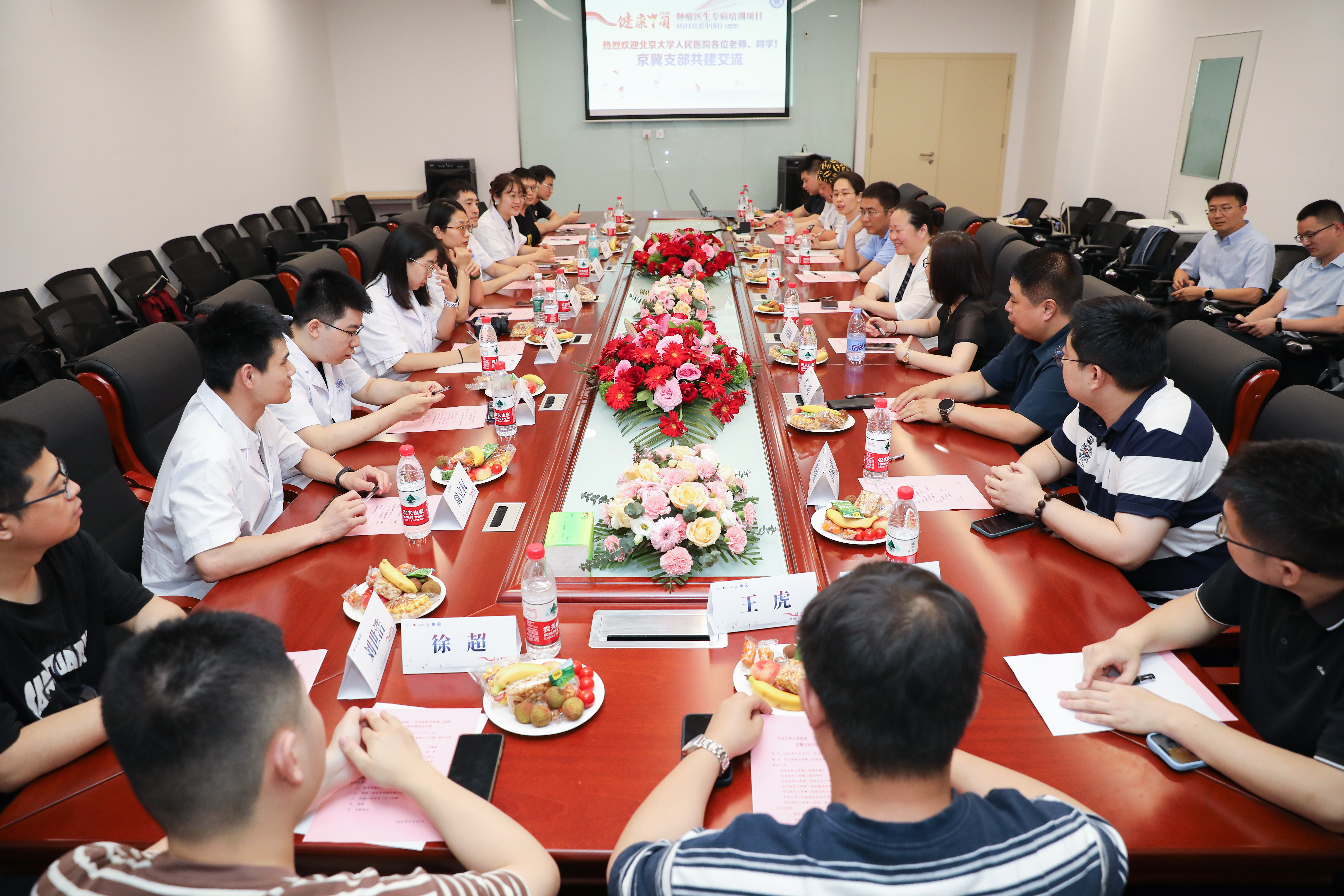 在京冀支部共建交流活动中,阎雪副院长和教务处负责人、相关专业导师、研究生代表11人,与来自北京大学人民医院临床研究生二支部6名学生代表,就党建指引下如何有效开展科研工作进行了充分的讨论与交流,对研究课题选择与设计、科研团队合作与管理、现代信息技术、临床实践及科研等问题进行了热烈讨论。