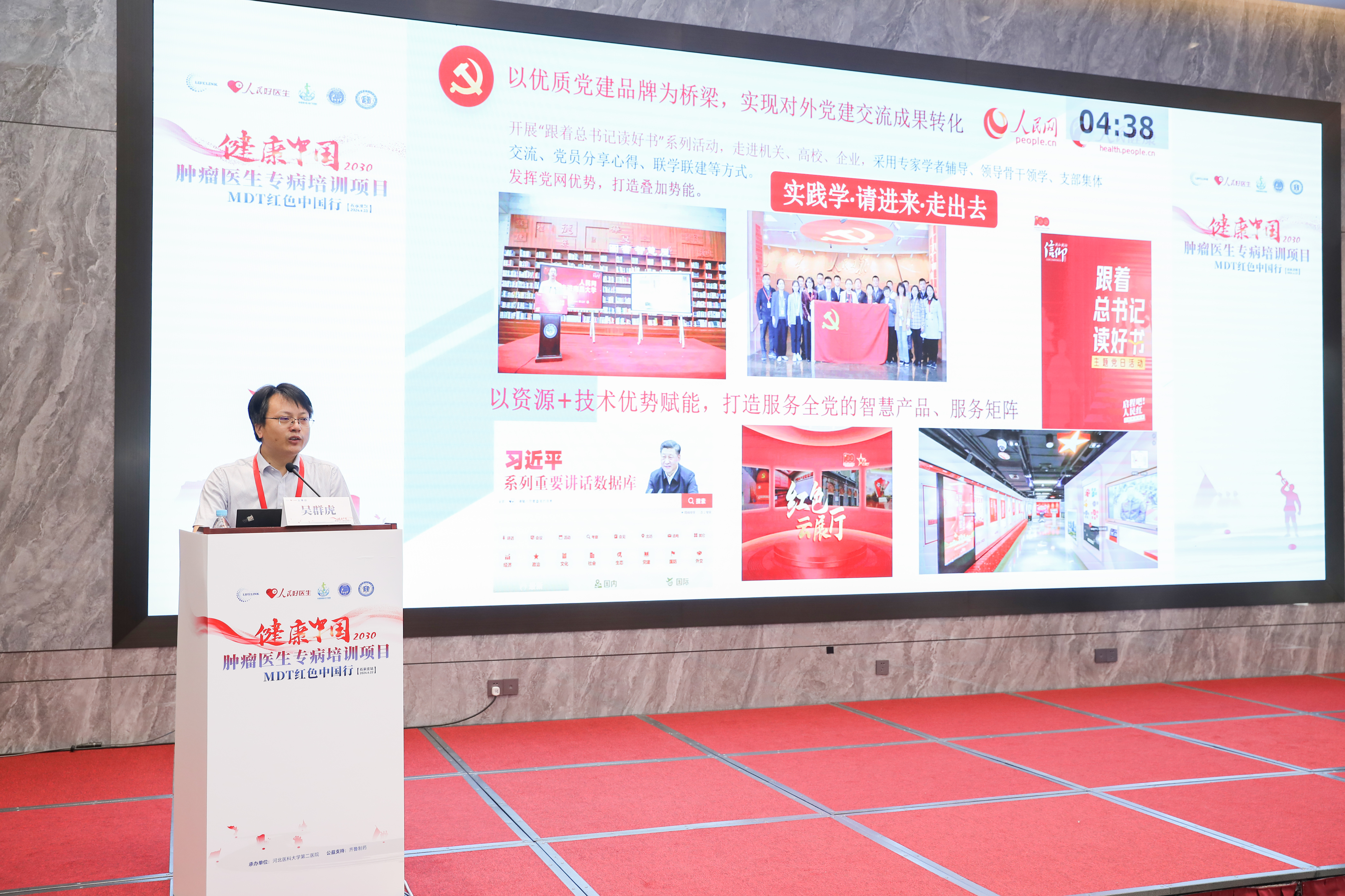 6月22日,由人民网·人民健康、康林肿瘤研究院、中国肿瘤MDT联盟联合主办,河北医科大学第二医院承办的“健康中国2030-肿瘤医生专病培训项目”MDT红色中国行(石家庄站)成功举办。本次活动分为学术交流、义诊和支部共建三个组成部分。
