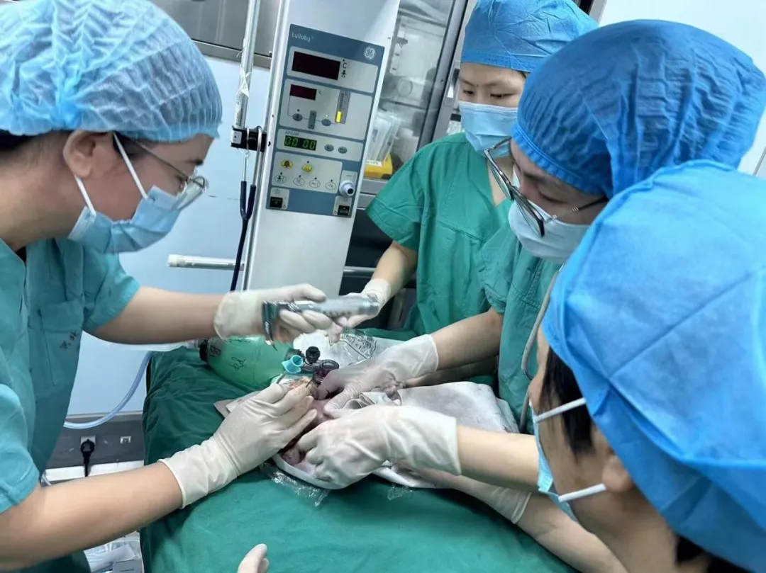 手术开始后,两位麻醉专家紧盯各项生命指征,随时调整麻醉方案,确保患者生命安全。产科蒋玉萍教授团队通力协作,迅疾而准确地完成每一步操作,经过1个多小时的奋战,贾女士顺利娩出一名850g(1.7斤)早产儿。
