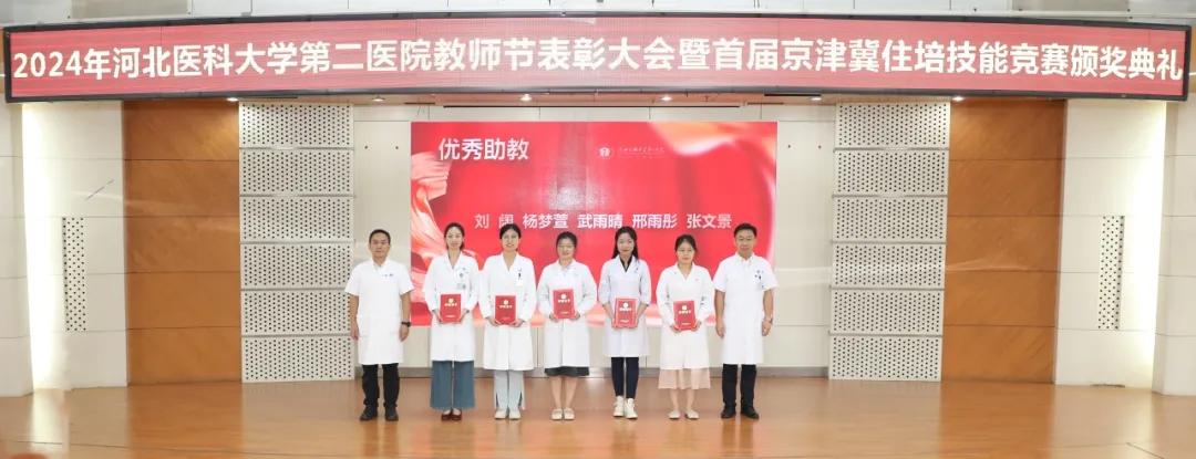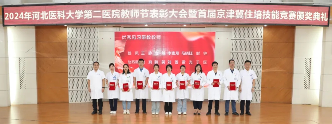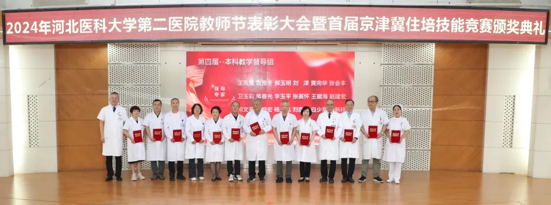 9月10日,我院隆重召开2024年教师节表彰大会暨首届京津冀住培技能大赛颁奖典礼,表彰在教学工作中做出杰出贡献的师生及团队。党委书记王贵英,党委副书记、纪委书记李立平,副院长阎雪、耿左军、于宝海,潘文森,医院教学督导组专家、教研室及各专业基地负责人、教学主任、教学秘书、脱产教师和受表彰的教师及学员齐聚一堂,共同见证了这一荣耀时刻。