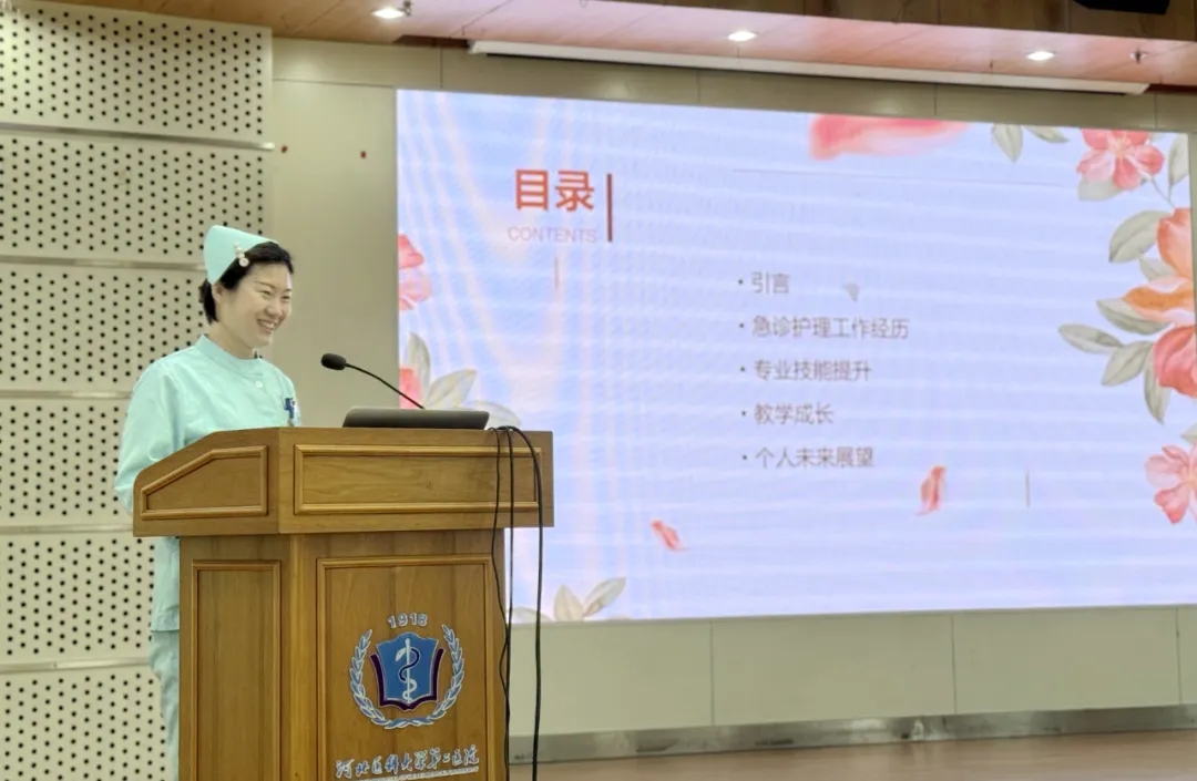 崔颖主管护师以《白衣成长记:从青涩到成熟的护理之路》为题,讲述了她从护理新人到急诊科骨干的蜕变过程。她分享了在张家口冬奥村综合诊所筹备与运营中的挑战,救治外籍运动员的难忘经历;还回顾了疫情期间作为发热门诊护理负责人的艰难时刻和团队无私互助的温馨故事。她认为,保持乐观心态、持续学习、勇于担当、见贤思齐是她职业成长中的关键要素。
