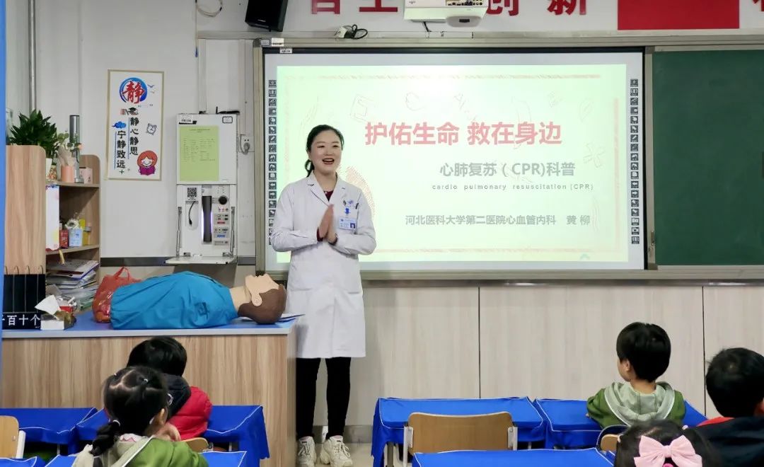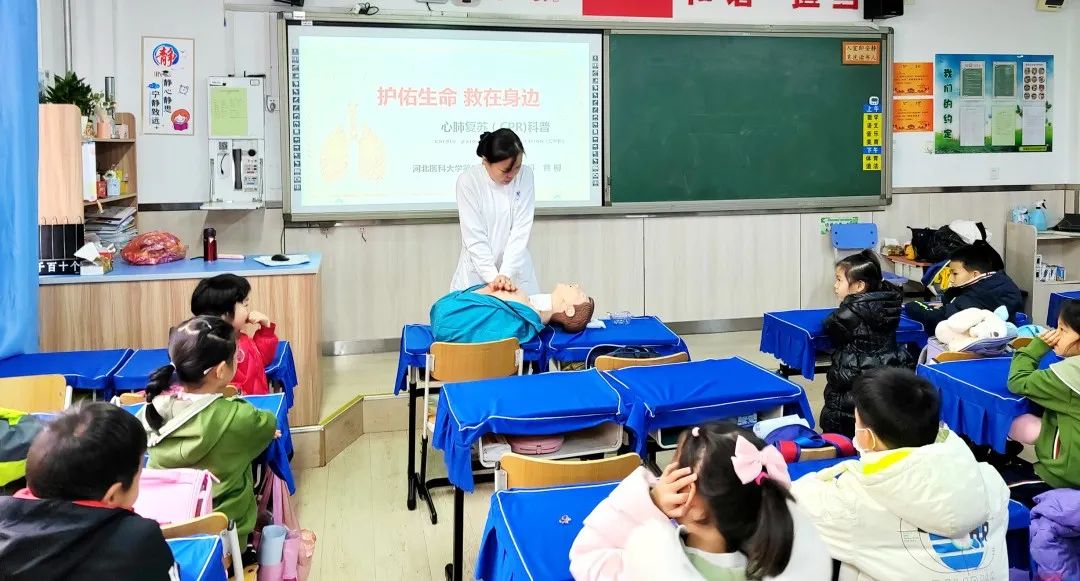 第一党总支第四党支部党员黄柳、杨君前往东风西路小学,开展“精彩生命大讲堂”——心肺复苏(CPR)科普活动。