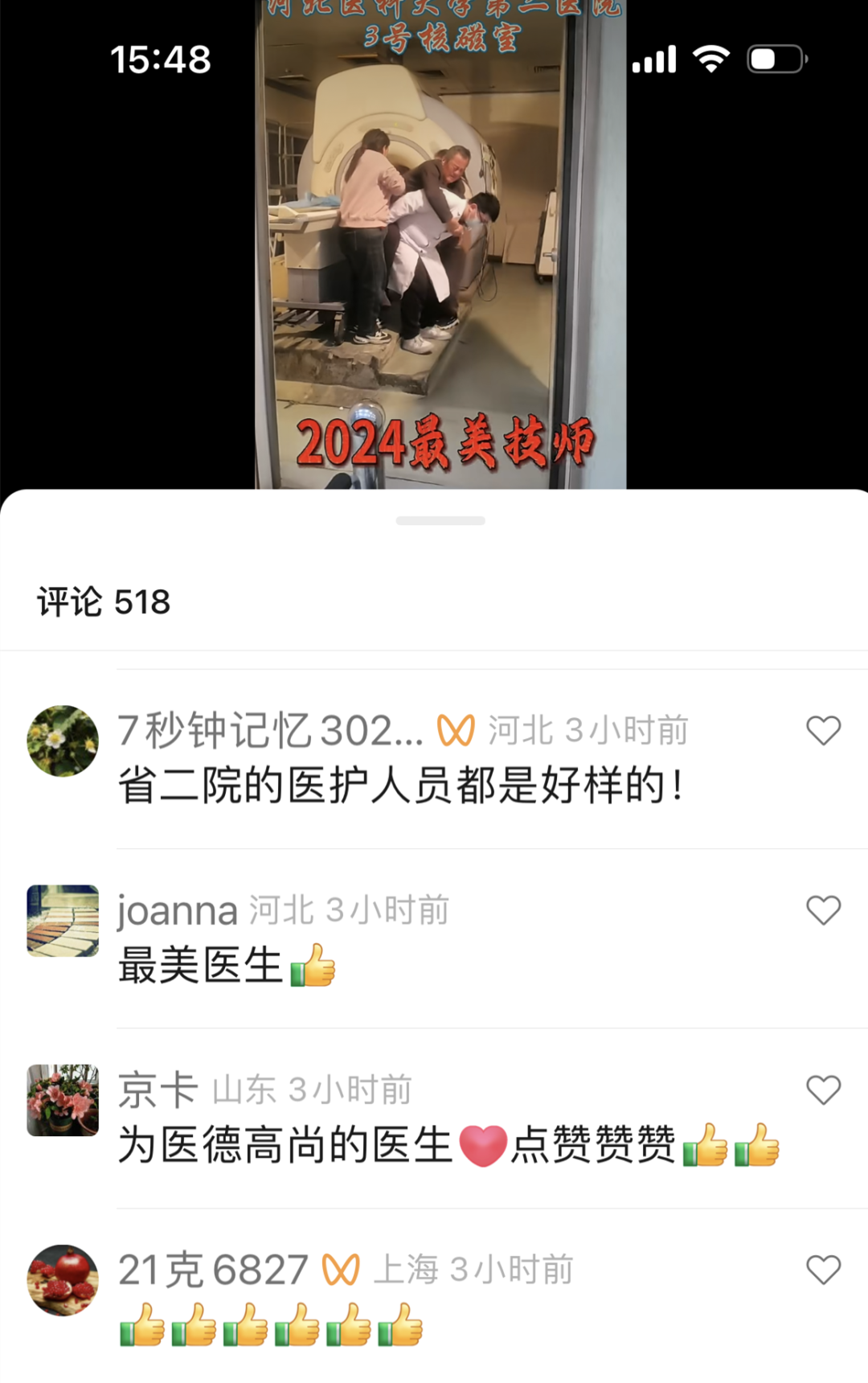 视频引发了广大网友的热烈反响,“医者仁心、责任、担当、大爱、好医生......”这些暖心的评论充满评论区,让爱在人群中慢慢散开,温暖了医患,温暖了这座城市,温暖了腊月寒冬的日子。