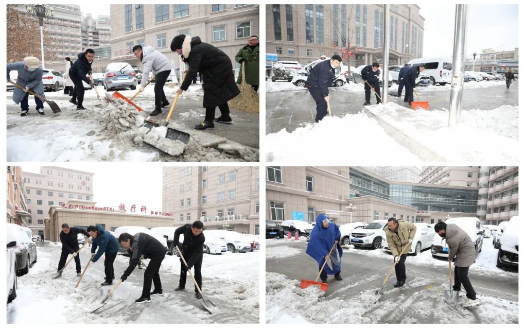 为有效应对冰雪天气带来的影响,确保患者安全有序就诊,我院迅速启动应急响应,院领导带领行政、后勤职能部门志愿者组成临时“扫雪队”,到医院各处清扫积雪,保障患者就医通道的畅通无阻。