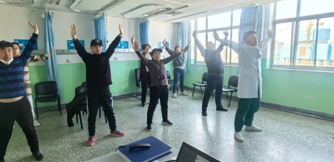 心身医学科医护人员组织了健康睡眠患教活动,她们为科室患者和家属讲解睡眠相关知识,带领大家进行渐进性肌肉放松训练、腹式呼吸指导患者呼吸训练,通过前后静息评估对每个人的放松训练效果进行评价。心身医学科开创性的将团体治疗带入失眠患者人群中,带领大家进行八段锦锻炼。改善了患者肌肉关节、体质、提高了抗病能力。
