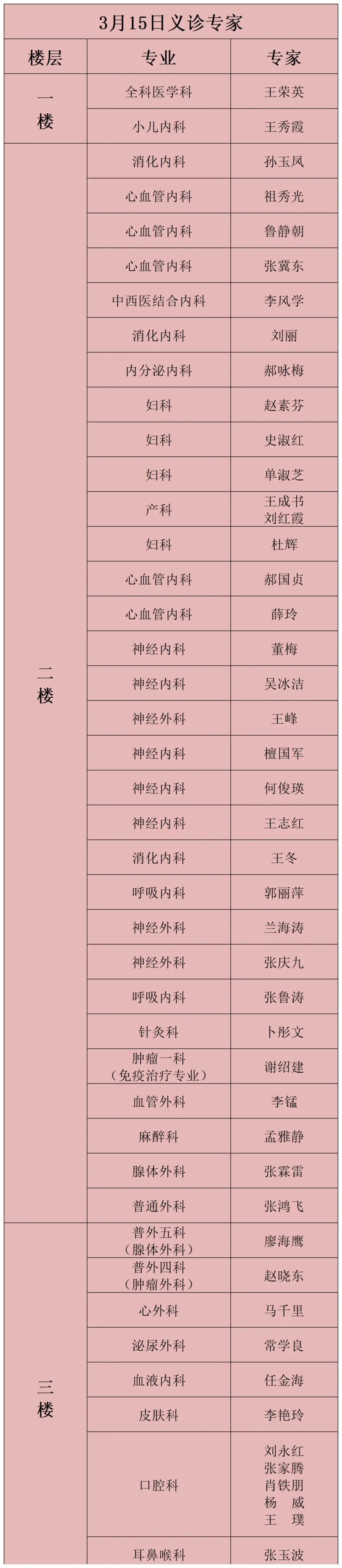 3月11日-3月15日鹿泉院区举办大型义诊周活动,国医大师姚希贤等200多位名医专家参加义诊,义诊周内所有科室均免收挂号费。