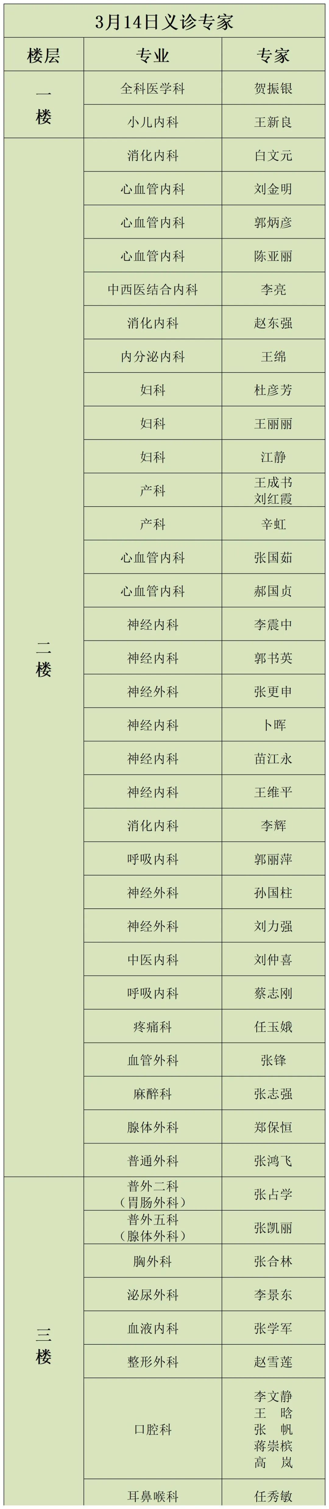 3月11日-3月15日鹿泉院区举办大型义诊周活动,国医大师姚希贤等200多位名医专家参加义诊,义诊周内所有科室均免收挂号费。