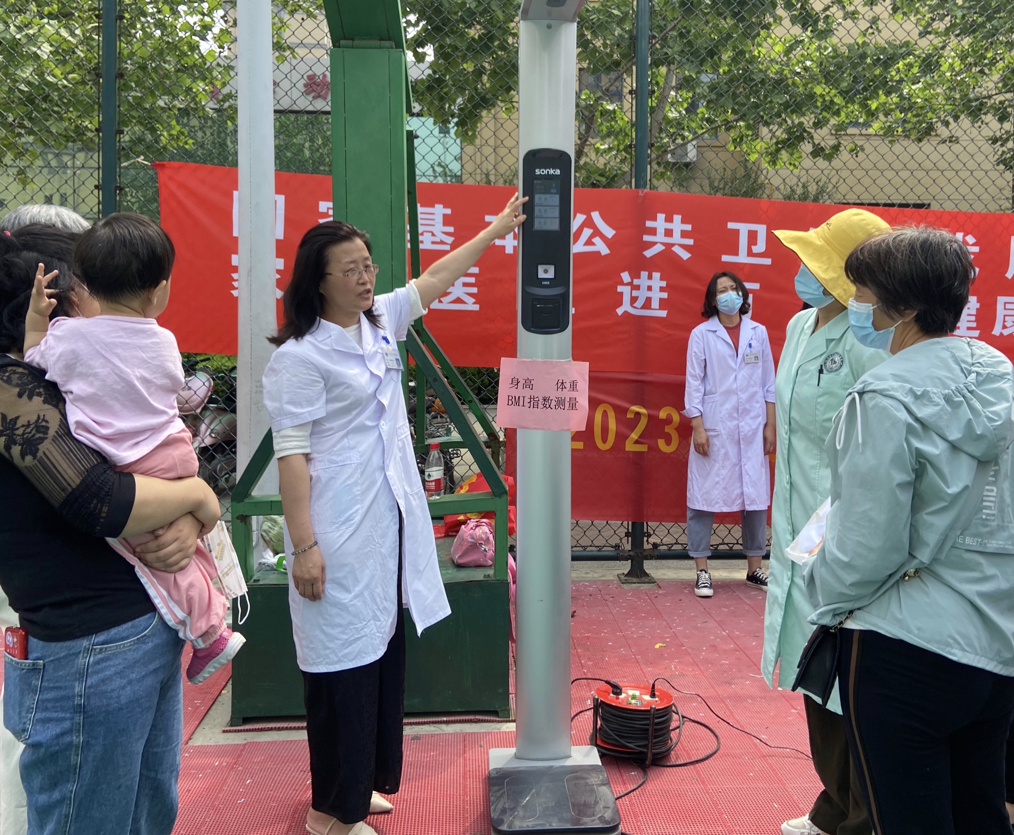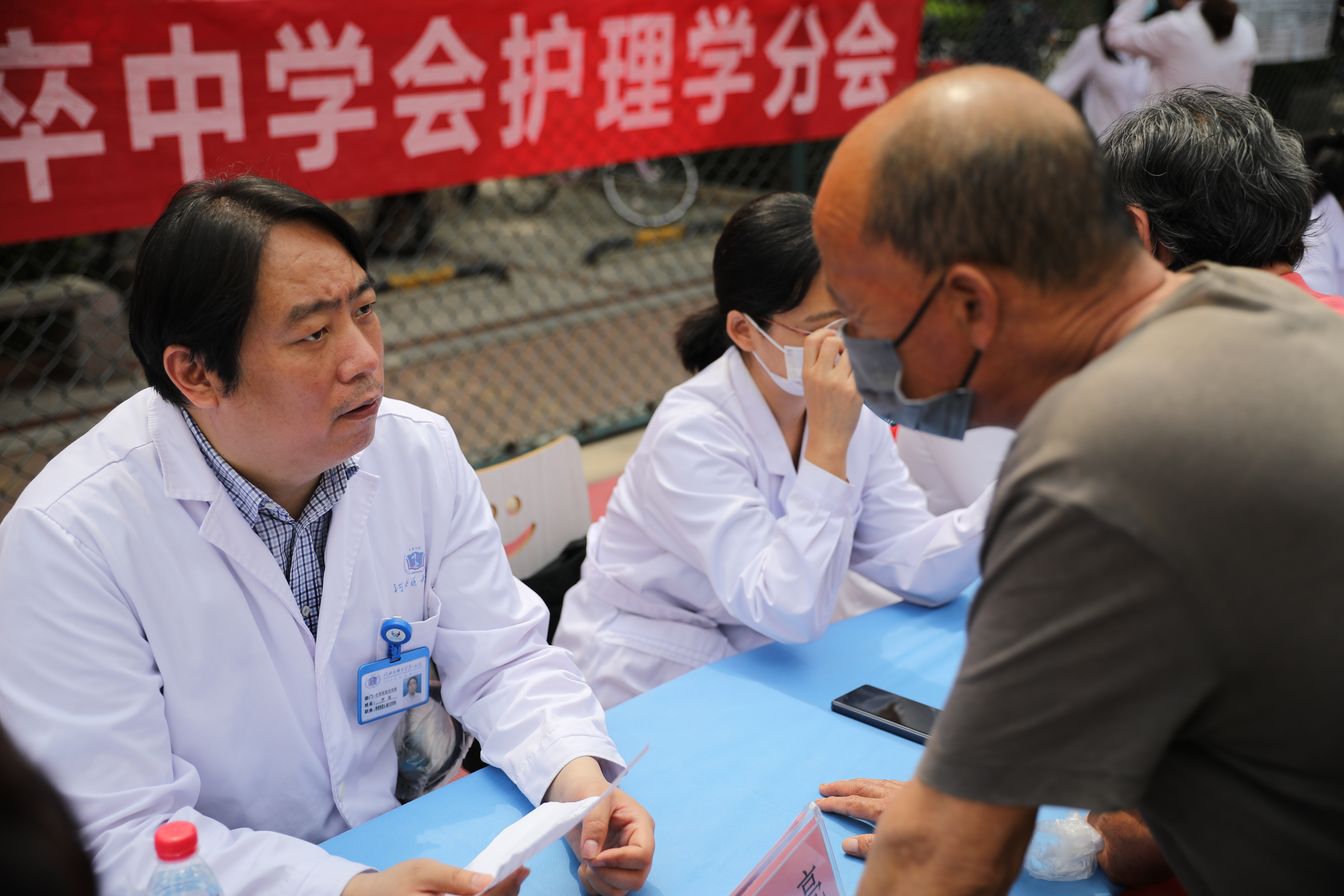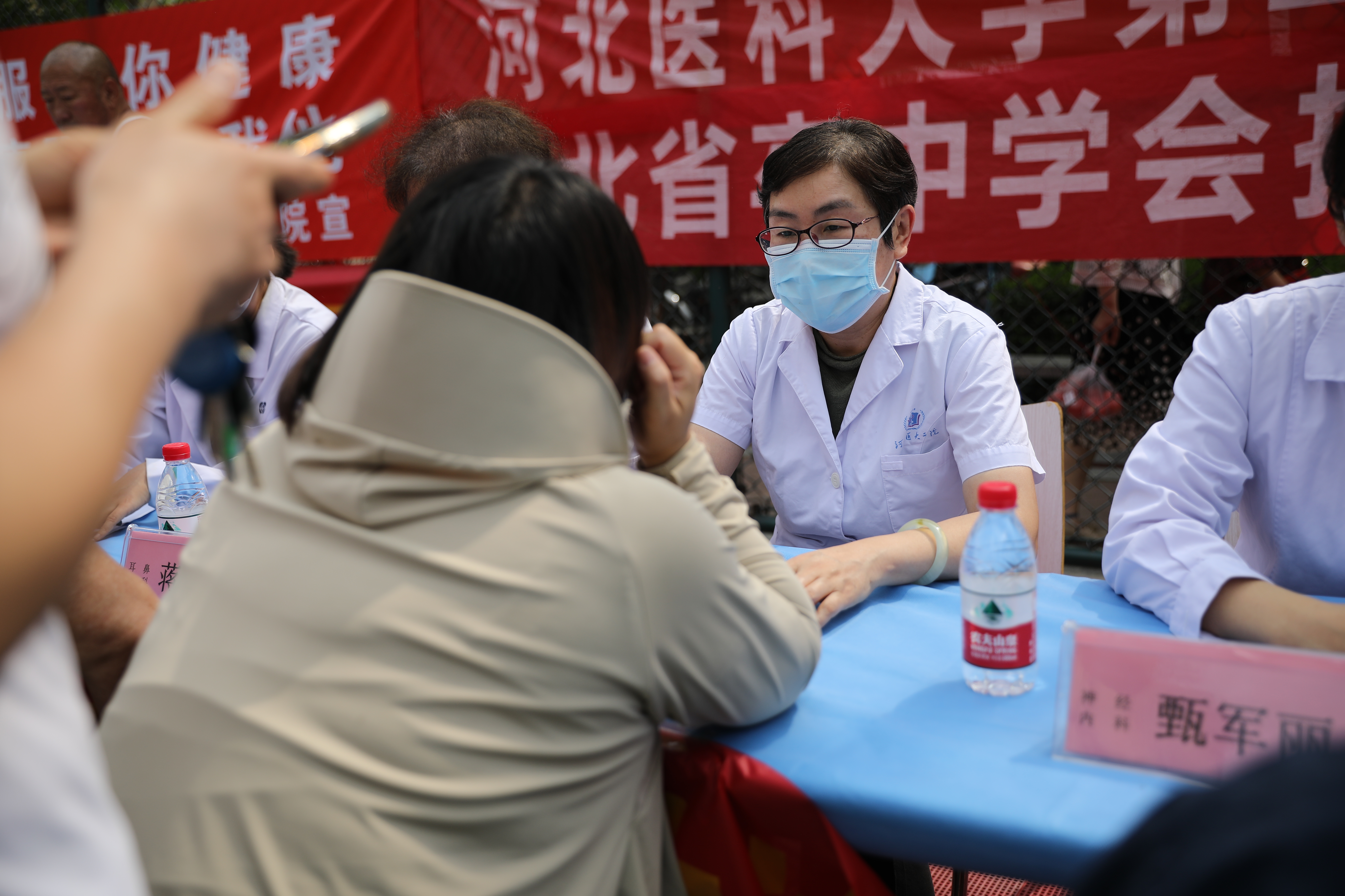 在烈日之下的义诊现场,我院肾内科李绍梅、针灸科卜彤文、内分泌内科王瑞英、心内七科都虹、神经内科甄军丽、耳鼻喉二科蒋新霞、营养科王燕、北院区神经内科马悦霞等医护专家对前来咨询的居民进行了详细的解答和耐心的指导,为他们提供了专业的医疗建议和治疗方案。同时结合发放慢病防治相关宣传资料,实践演示等方式,分享了一些高血压的测量、如何合理饮食、关注自身情绪等小贴士。
